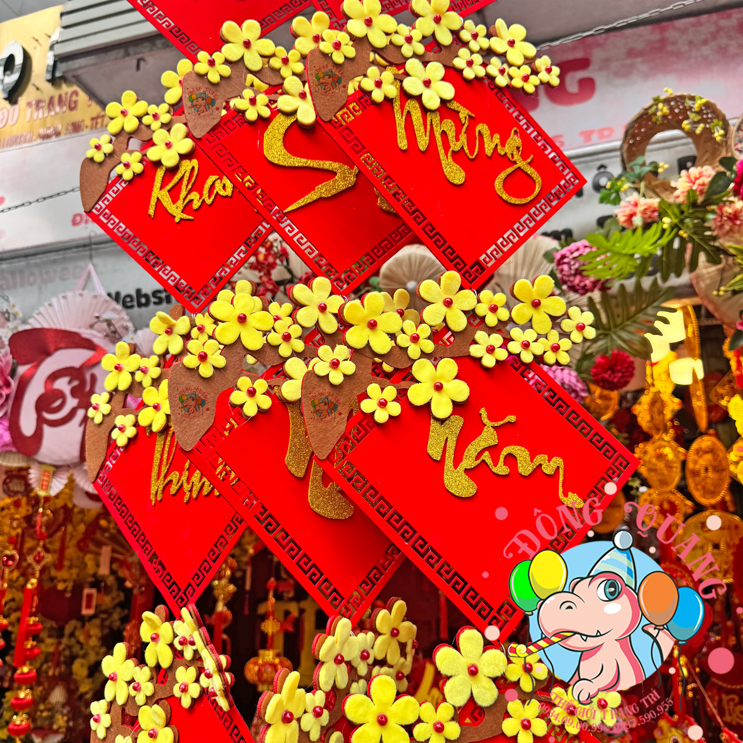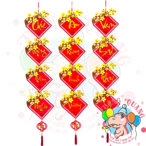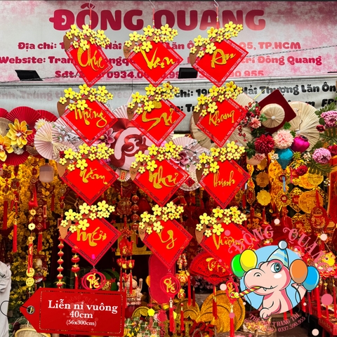- Quy cách: sản phẩm gồm 04 tấm liễn (khánh) treo nối dọc ghép thành 1 câu (Chúc mừng năm mới, An khang thịnh vượng, Vạn sự như ý, Tấn tài tấn lộc, Mua may bán đắt...)