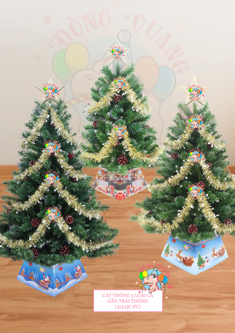 - Sản phẩm được tặng kèm dây kim tuyến, ngôi sao (cây cao 90-240cm tặng kèm đế giấy trang trí); không bao gồm đồ trang trí khác (đèn LED, chuông, hàng rào, hộp quà...).