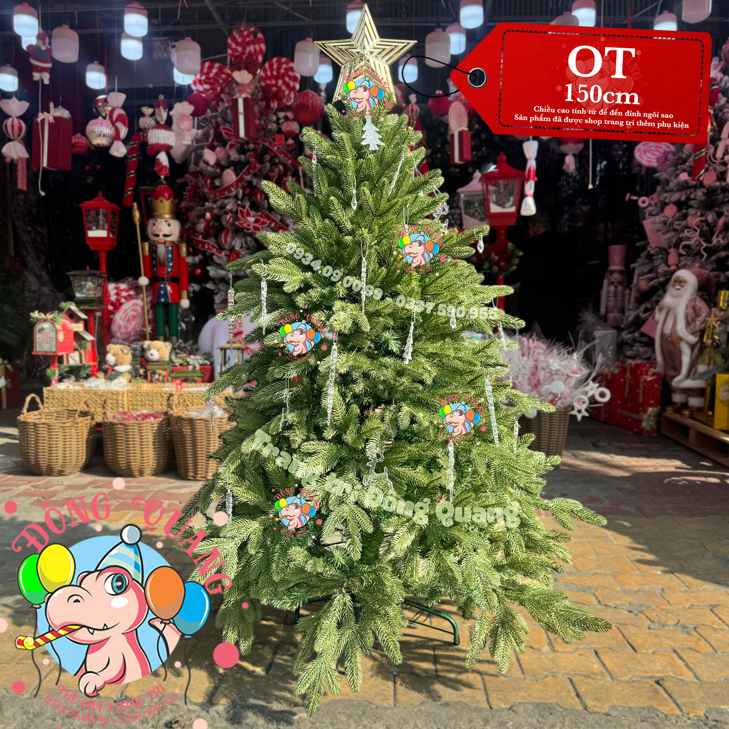 - Kích thước: cao 150-180-210-240-300cm (tính từ đế đến đỉnh ngôi sao).