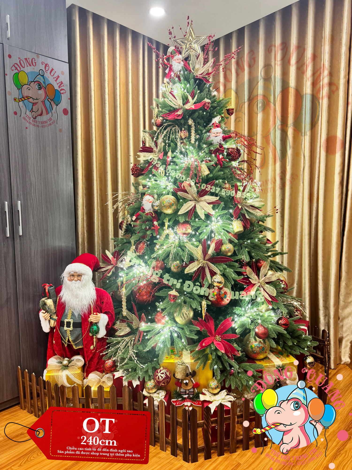 - Sản phẩm được tặng kèm ngôi sao; không bao gồm đồ trang trí khác (đèn LED, dây kim tuyến, chuông, hàng rào, hộp quà...).