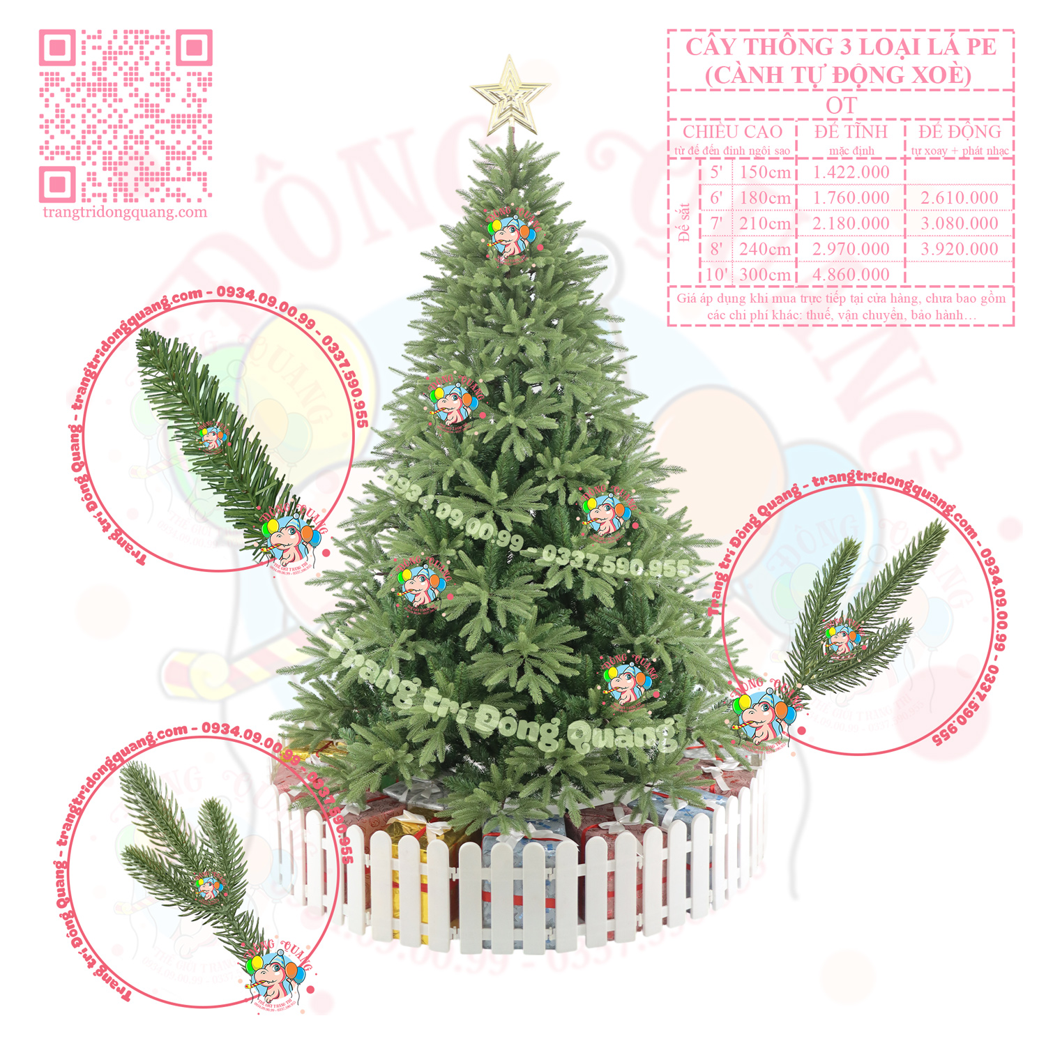 - Tuỳ chọn: chân đế điện xoay, hộp phát nhạc (cây cao180-240cm).
