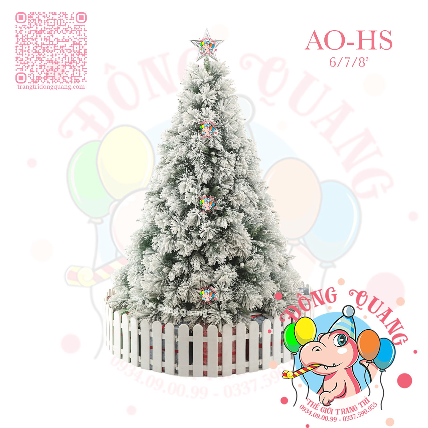 - Kích thước: cao 180-210-240cm (tính từ đế đến đỉnh ngôi sao).