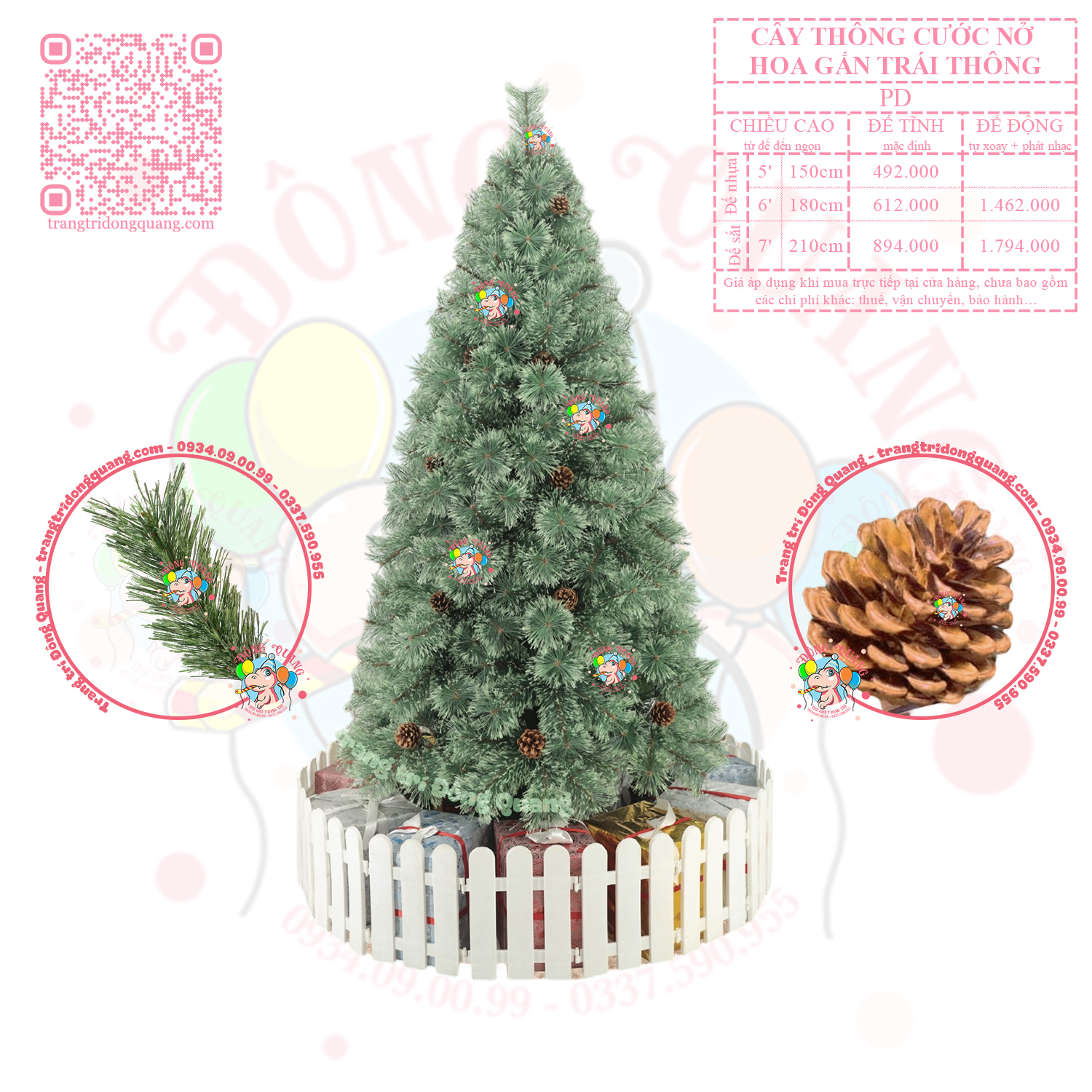 - Tuỳ chọn: chân đế điện xoay, hộp phát nhạc (cây cao 180-210cm).
