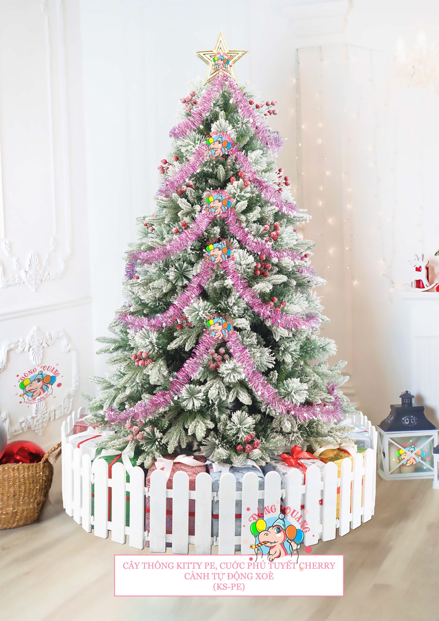 - Chất liệu: 3 loại lá PE, PVC, cước nở hoa phủ tuyết cao cấp, cherry.