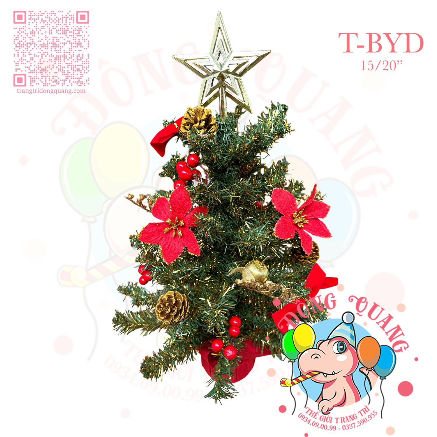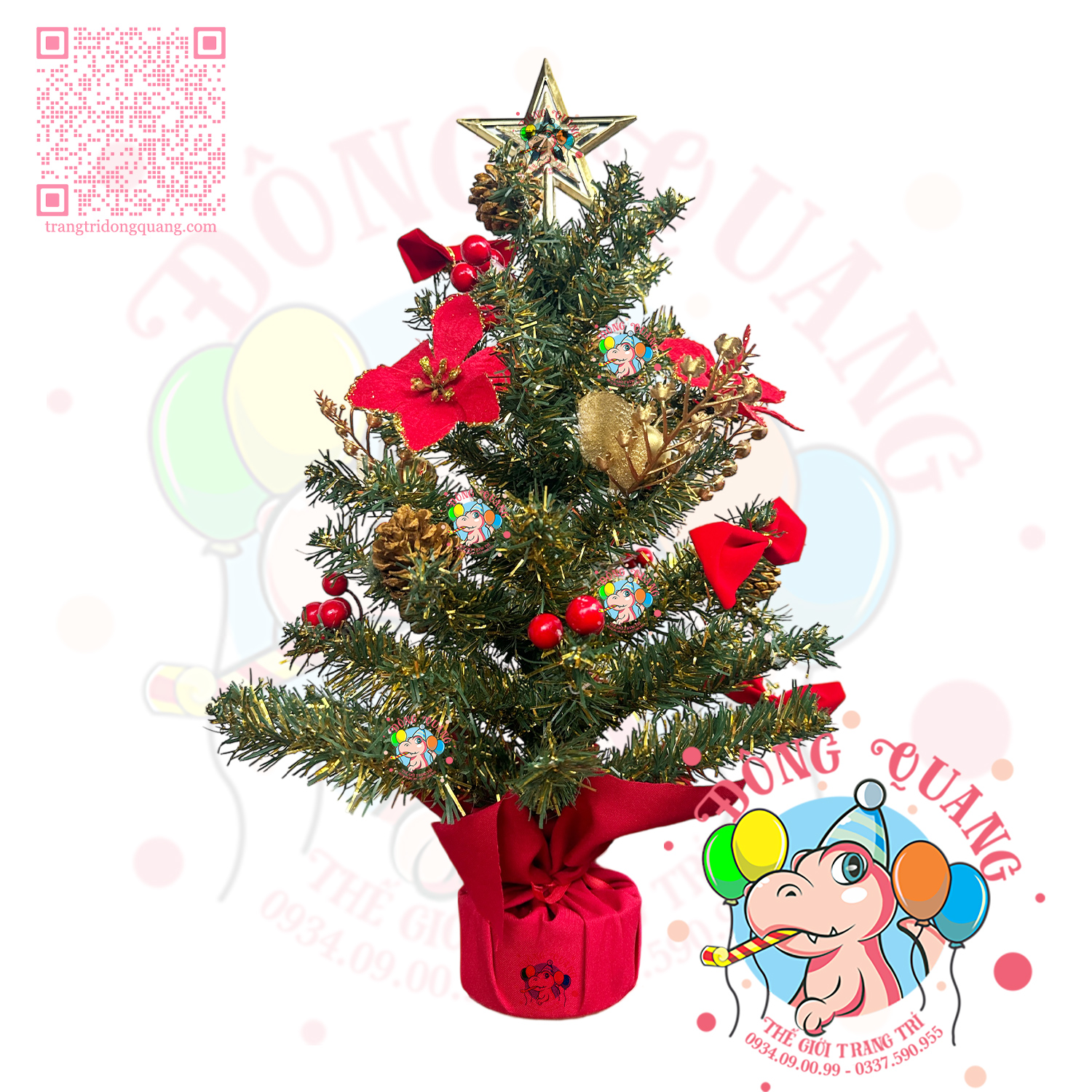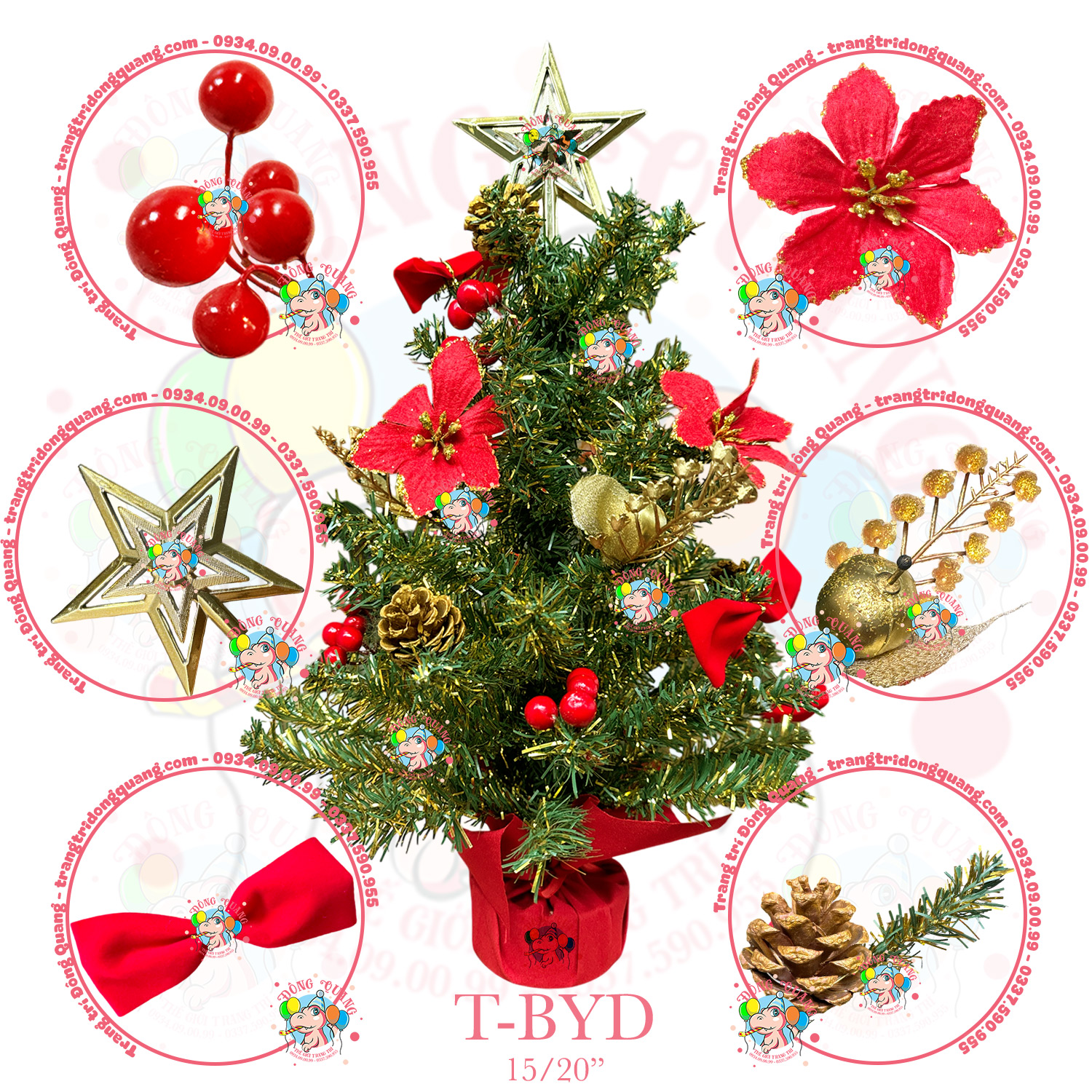 - Chất liệu: lá PVC cao cấp, trái thông, hoa trạng nguyên, cherry, ngôi sao nhựa.