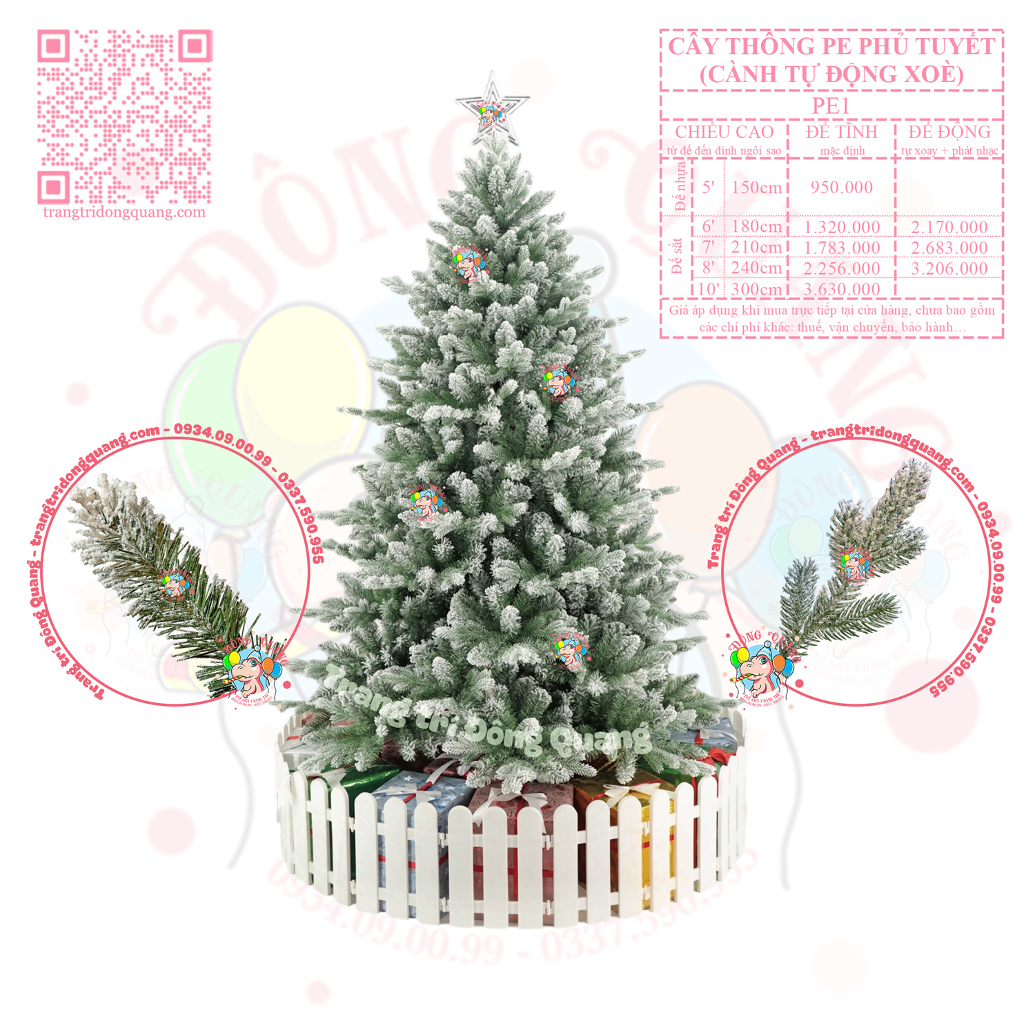 - Tuỳ chọn: chân đế điện xoay, hộp phát nhạc (cây cao 180-240cm).