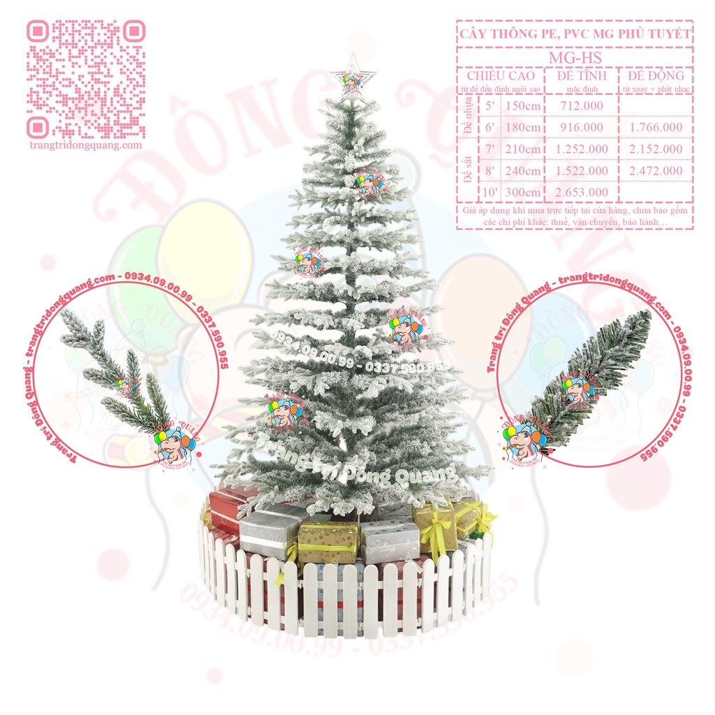 - Chất liệu: nhánh PE 7 lá, lá PVC phủ tuyết cao cấp.