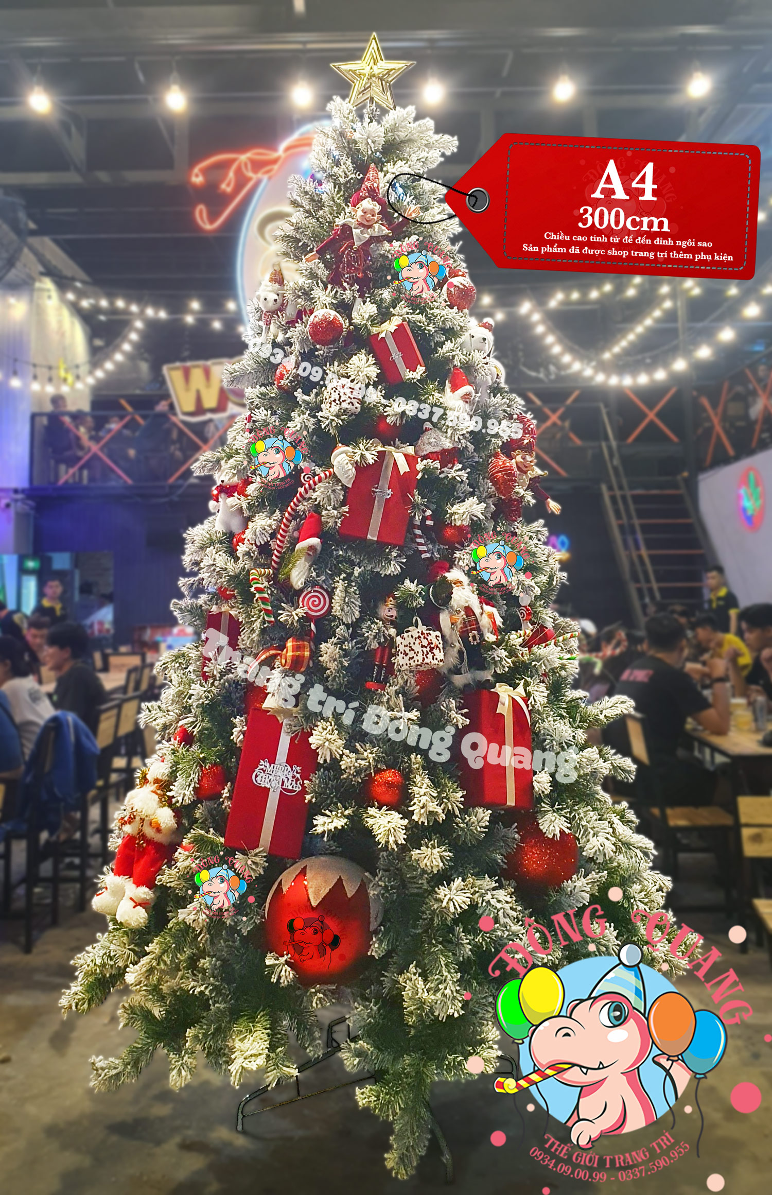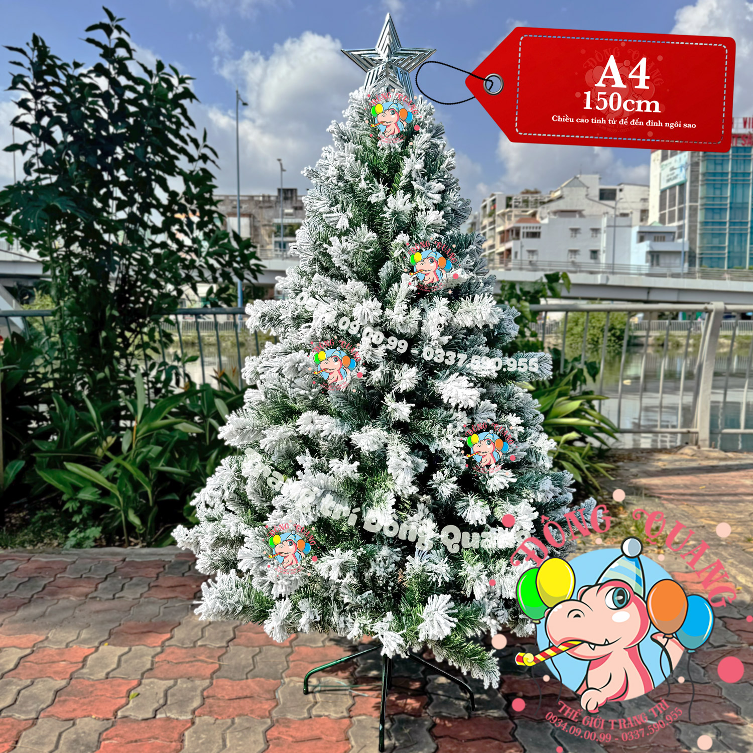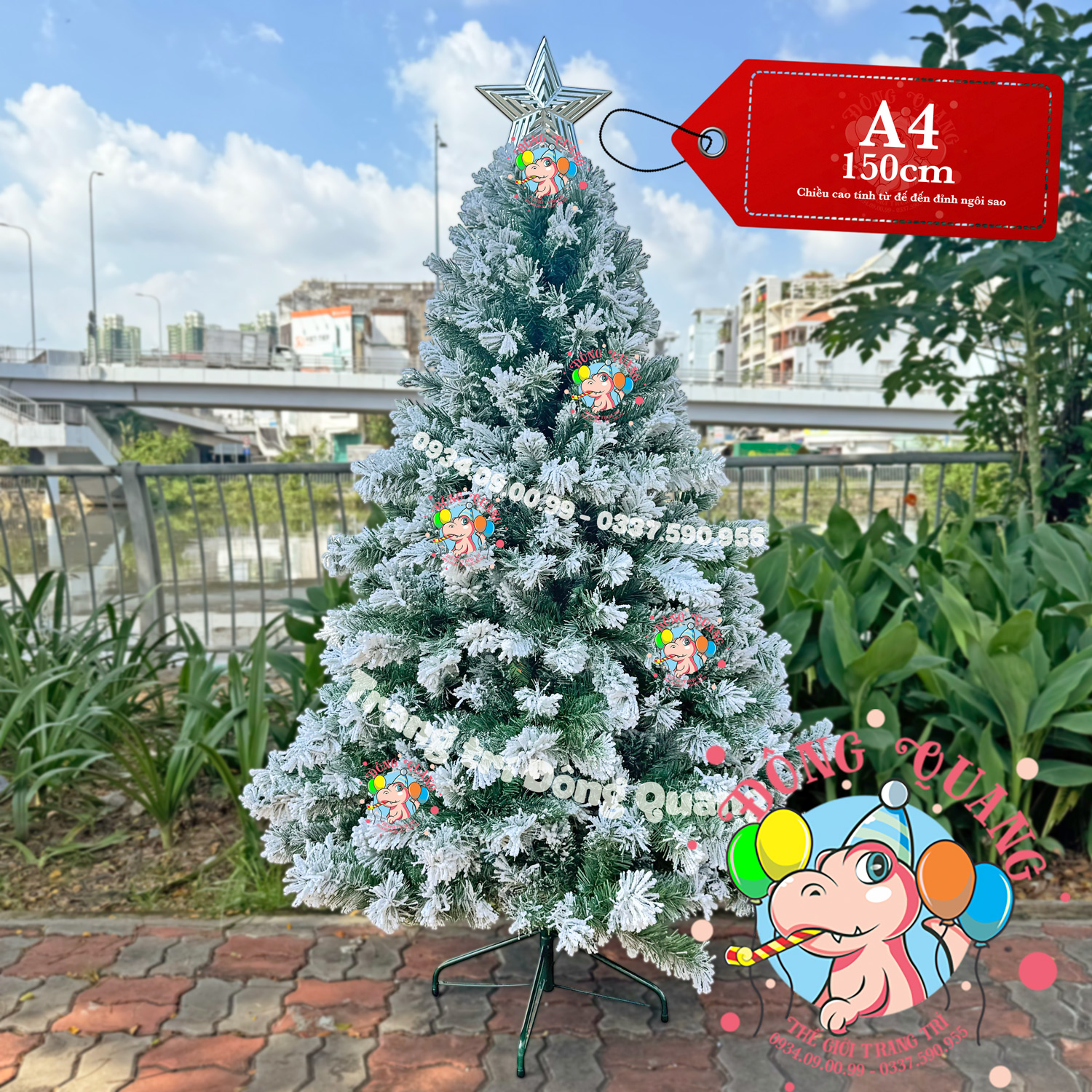 - Kích thước: cao 120-150-180-210-240-300-360-450cm (tính từ đế đến đỉnh ngôi sao).