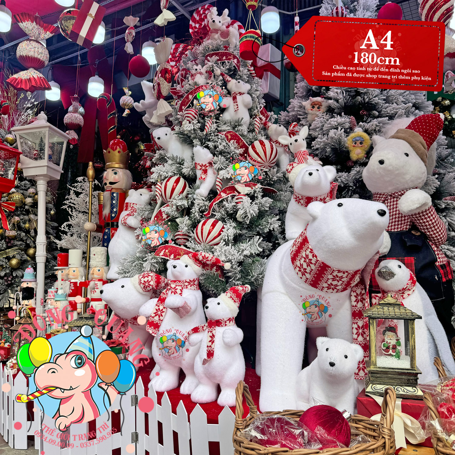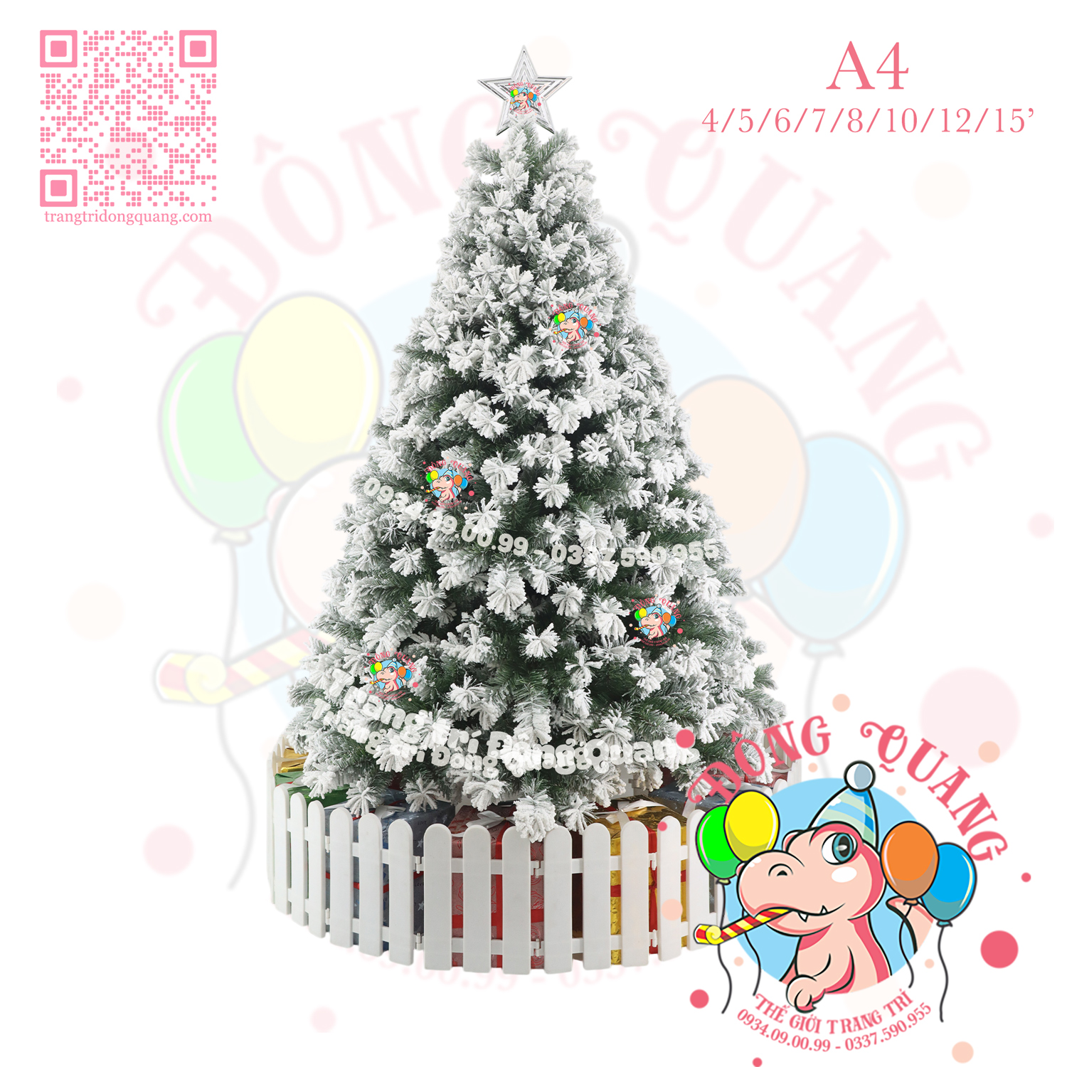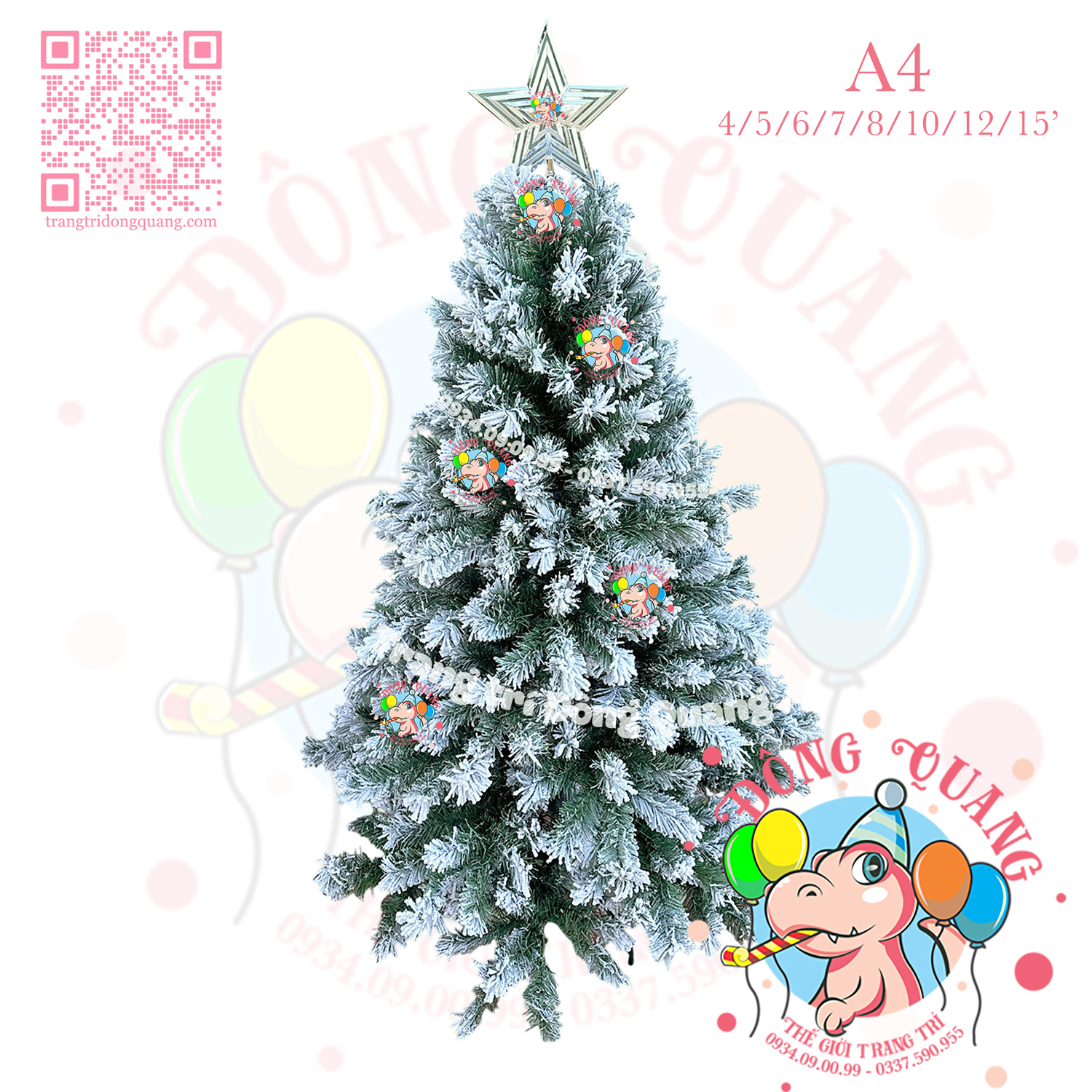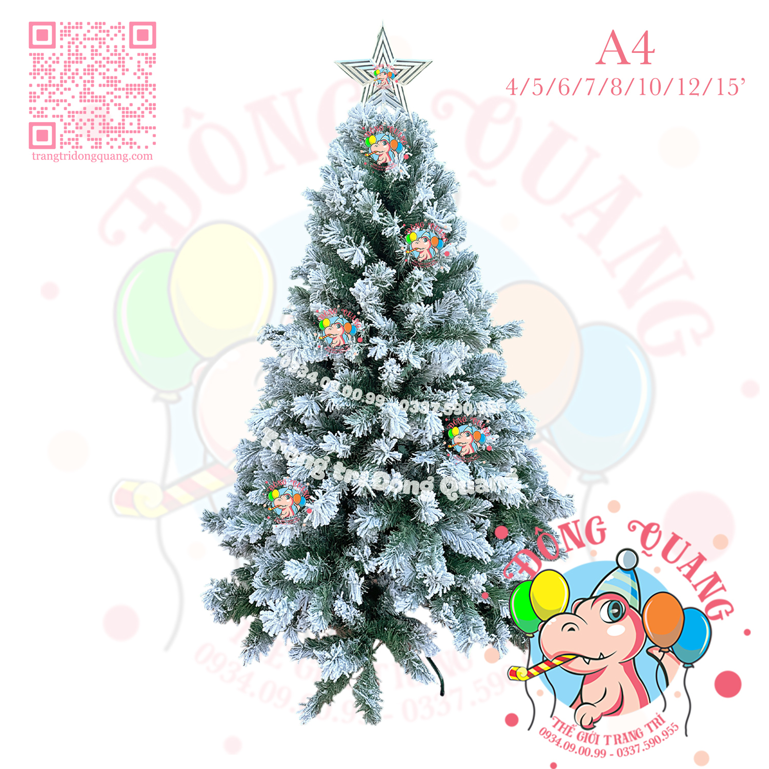 - Kích thước: cao 120-150-180-210-240-300-360-450cm (tính từ đế đến đỉnh ngôi sao).
