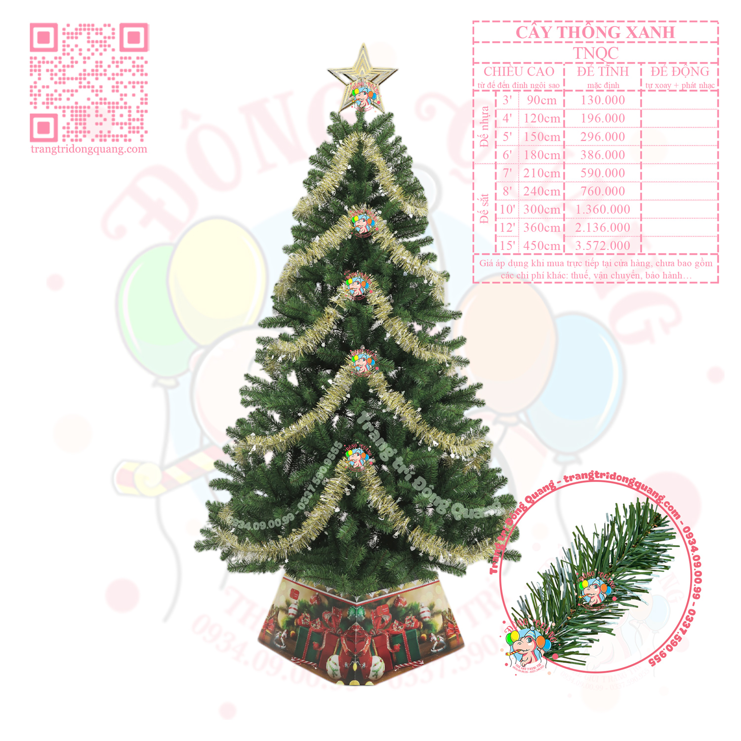 - Sản phẩm được tặng kèm dây kim tuyến, ngôi sao (cây cao 90-240cm tặng kèm đế giấy trang trí); không bao gồm đồ trang trí khác (đèn LED, chuông, hàng rào, hộp quà...).