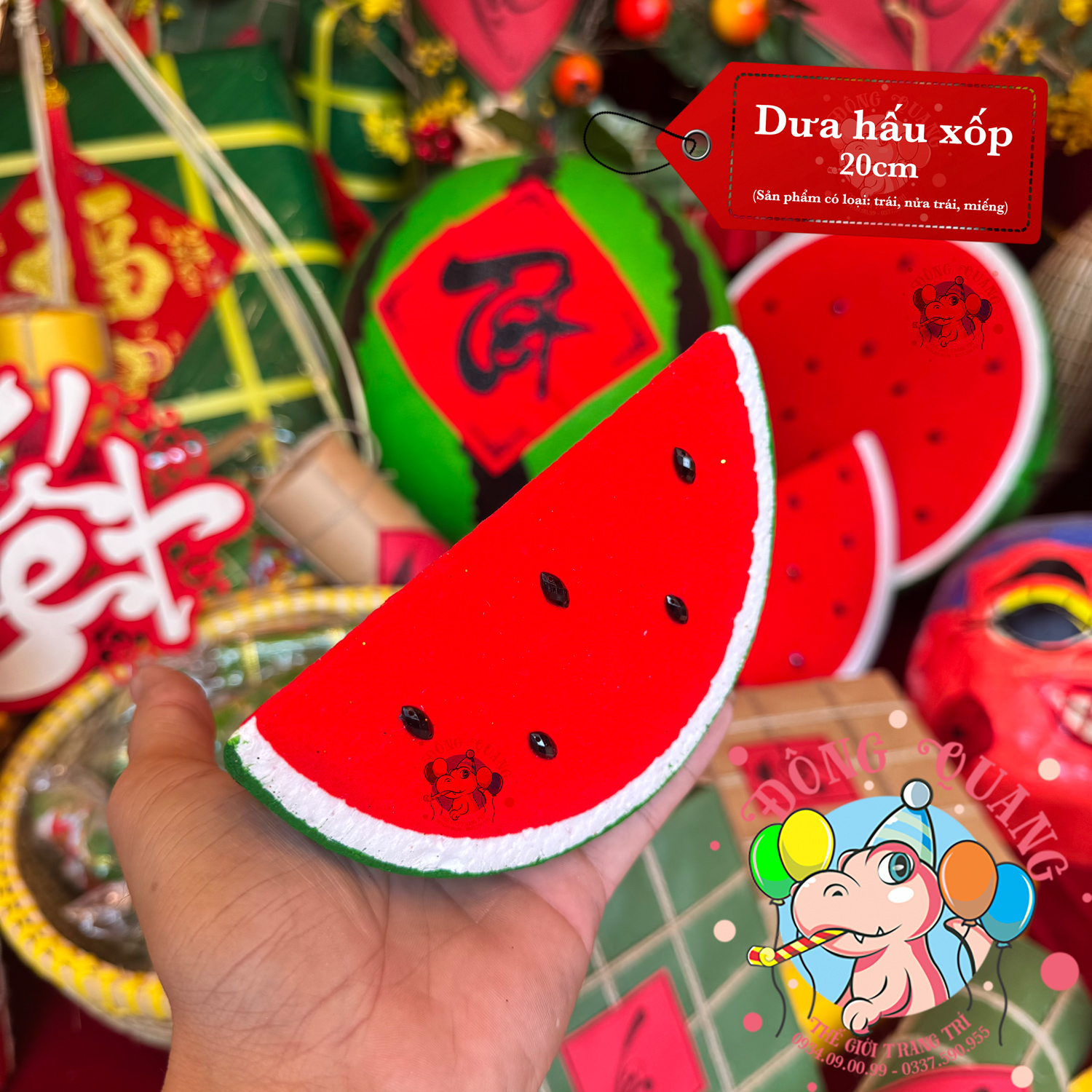 - Sản phẩm gồm: 01 thỏi vàng, 01 bánh chưng, 02 bánh tét, 01 trái dưa hấu, 01 miếng dưa hấu.