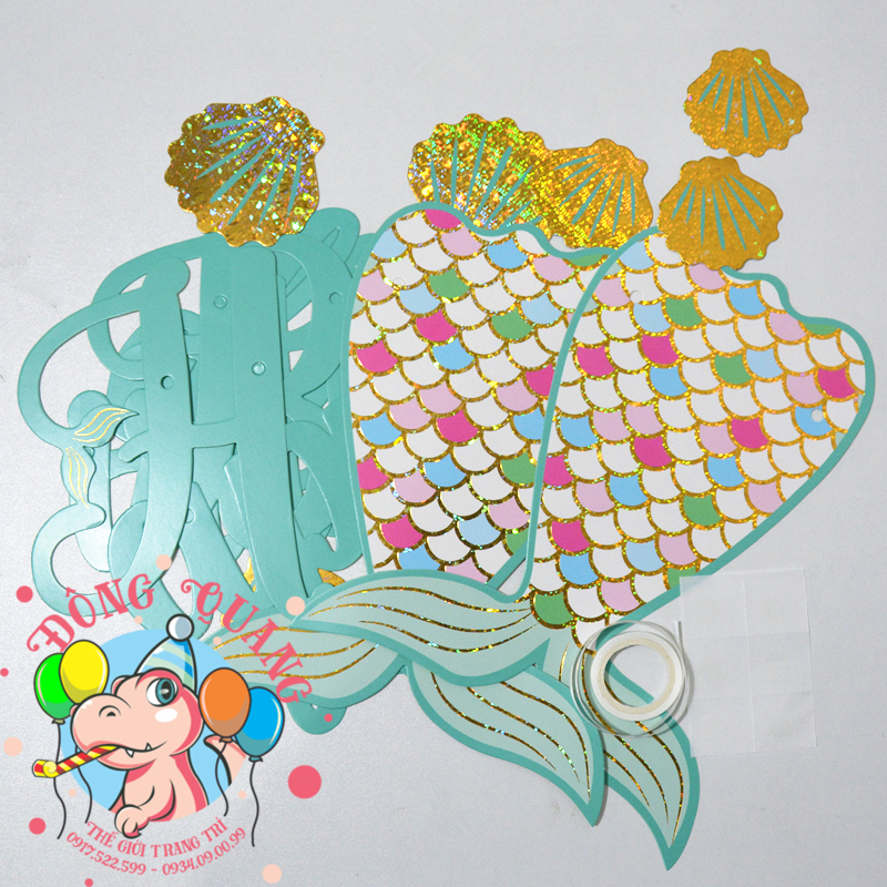 - Sản phẩm gồm 01 dây dài 2-3m, kích thước chữ 16cm, kích thước đuôi cá 25cm. Mỗi tấm hình đã đục lỗ 2 góc trên cùng, dùng dây ribbon nối lại với nhau tạo thành 1 dây chữ.