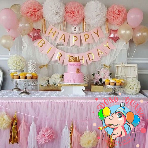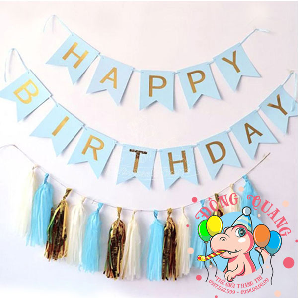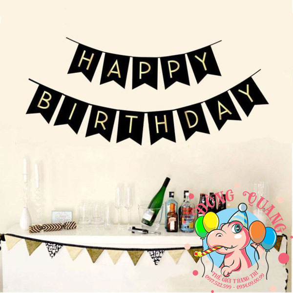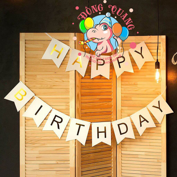 - Dây chữ Happy Birthday là phụ kiện trang trí sinh nhật đơn giản, màu sắc giúp cho không gian tiệc của bạn thêm xinh. Sinh nhật của bạn không thể thiếu banner chữ Happy Birthday dù trang trí ở nhà, nhà hàng hay văn phòng làm việc Có nhiều màu sắc cho bạn chọn lựa tùy theo sở thích và cá tính của bạn Thích hợp trang trí cho buổi tiệc sinh nhật đơn giản, không cầu kỳ nhưng vẫn ý nghĩa và sinh động. Lý tưởng để trang trí tiệc sinh nhật cho bạn bè, đồng nghiệp, người thân tạo sự bất ngờ cho chủ nhân buổi tiệc mà không tốn quá nhiều thời gian, công sức để chuẩn bị Khi trang trí có thể kết hợp với dây tua rua, quạt giấy, hoa tú cầu pom pom giấy... hoặc dây chữ theo tên chủ nhân buổi tiệc.