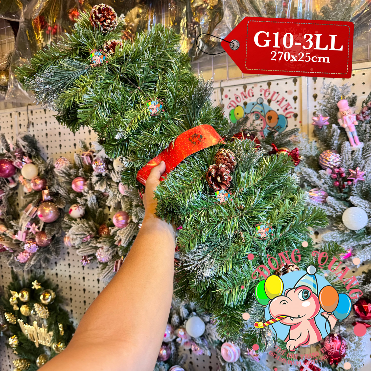 - Chất liệu: 3 loại lá PVC, cước, trái thông.