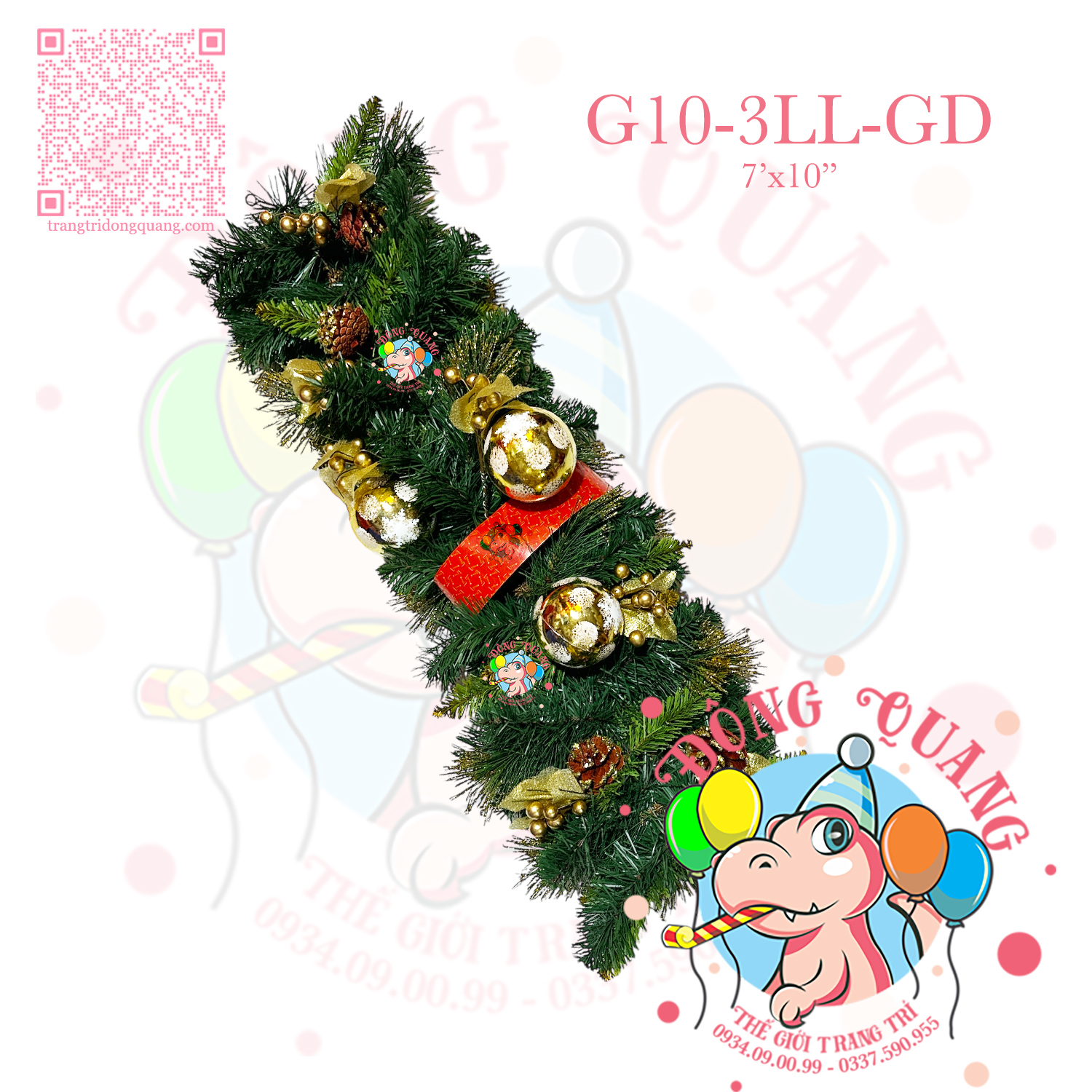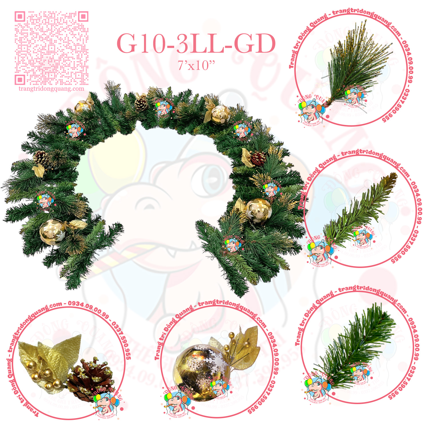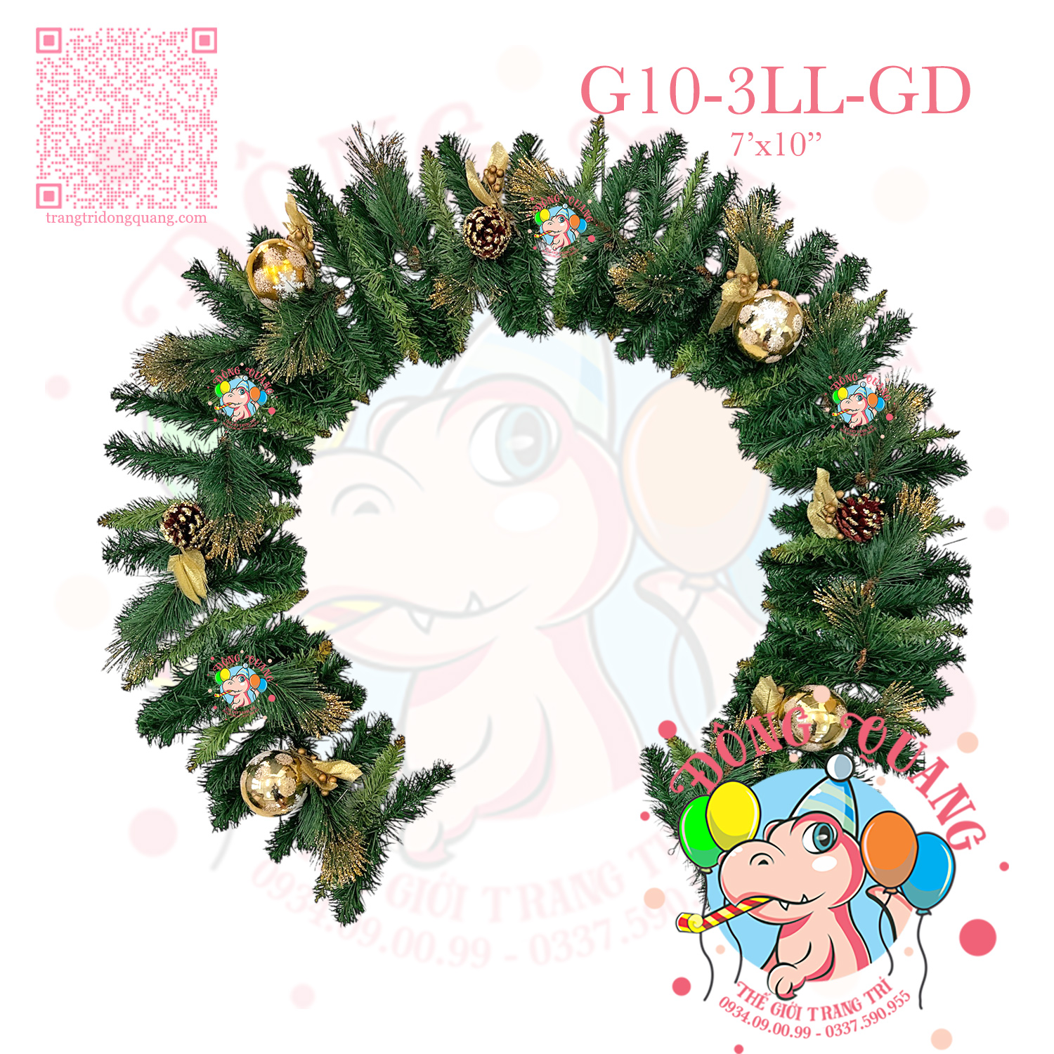 - Chất liệu: 3 loại lá PVC, cước phun kim tuyến vàng, trái thông, trái châu, cherry.