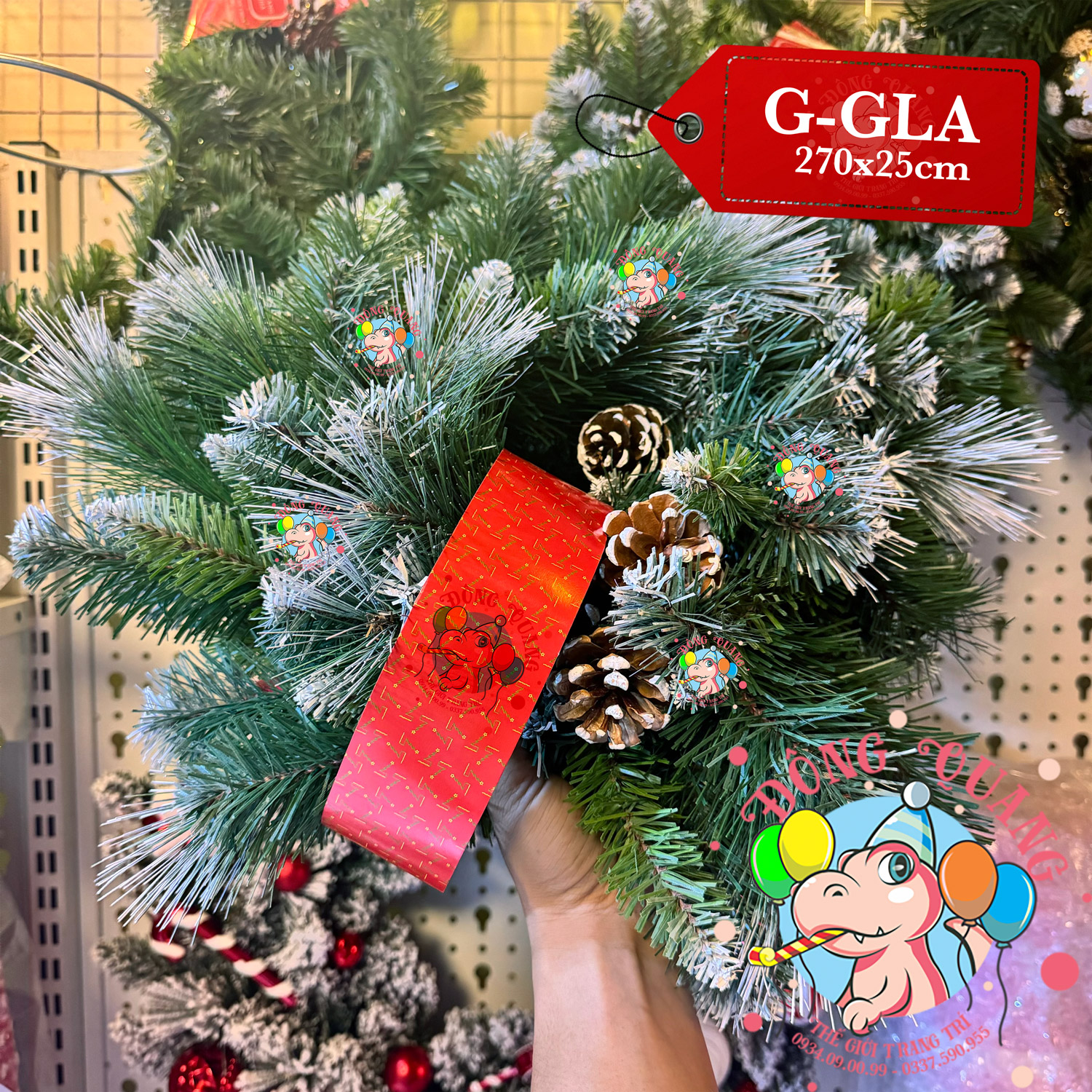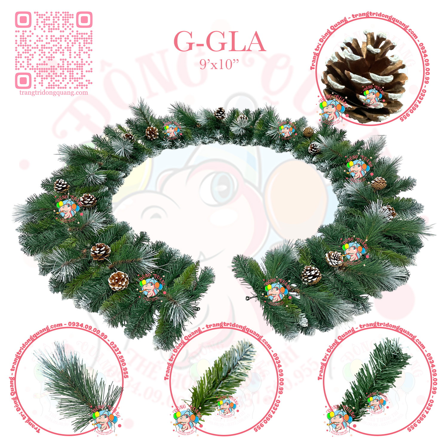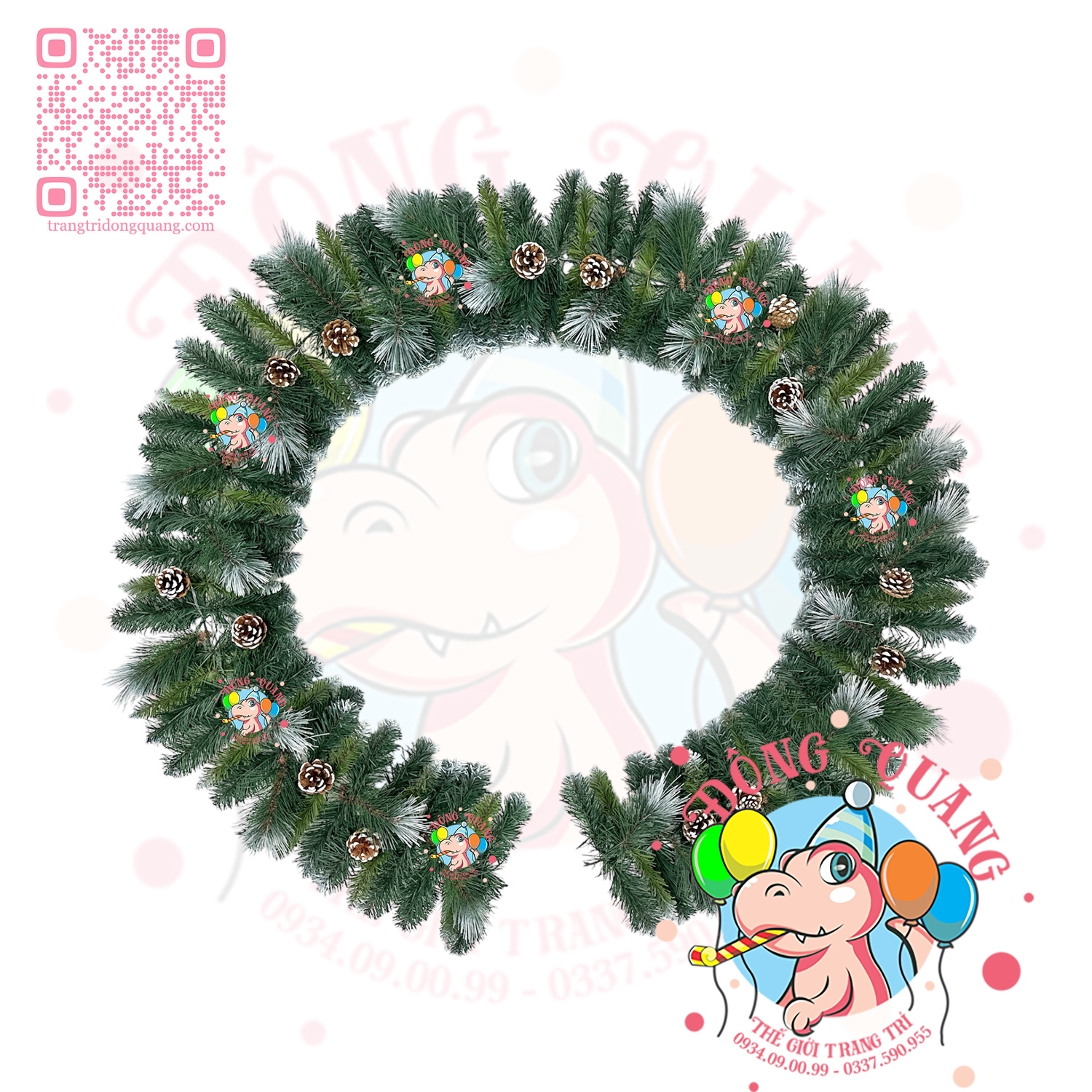 - Chất liệu: 3 loại lá PVC, cước phun sơn, trái thông.