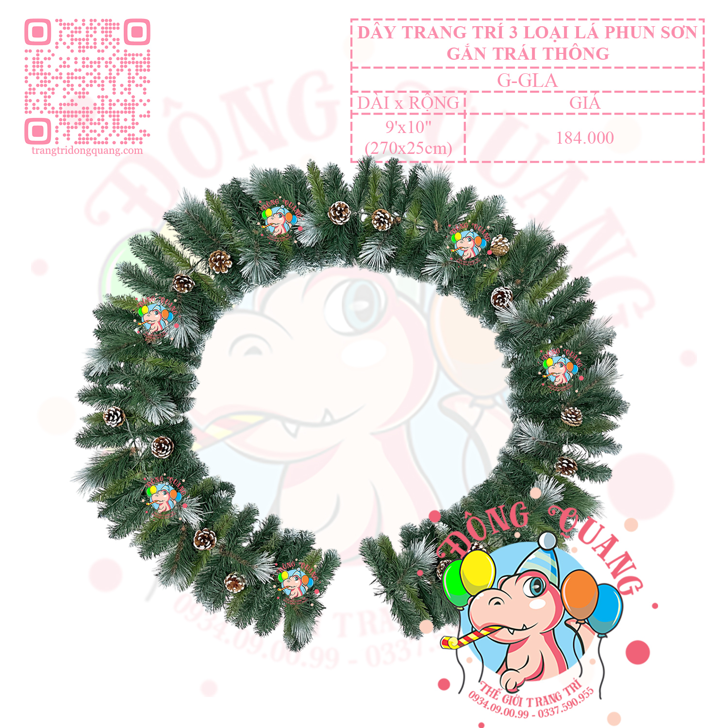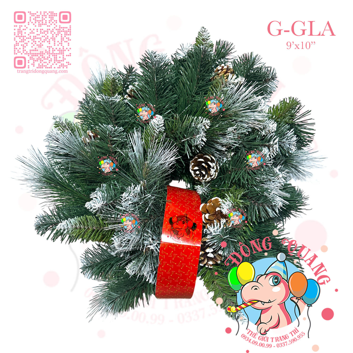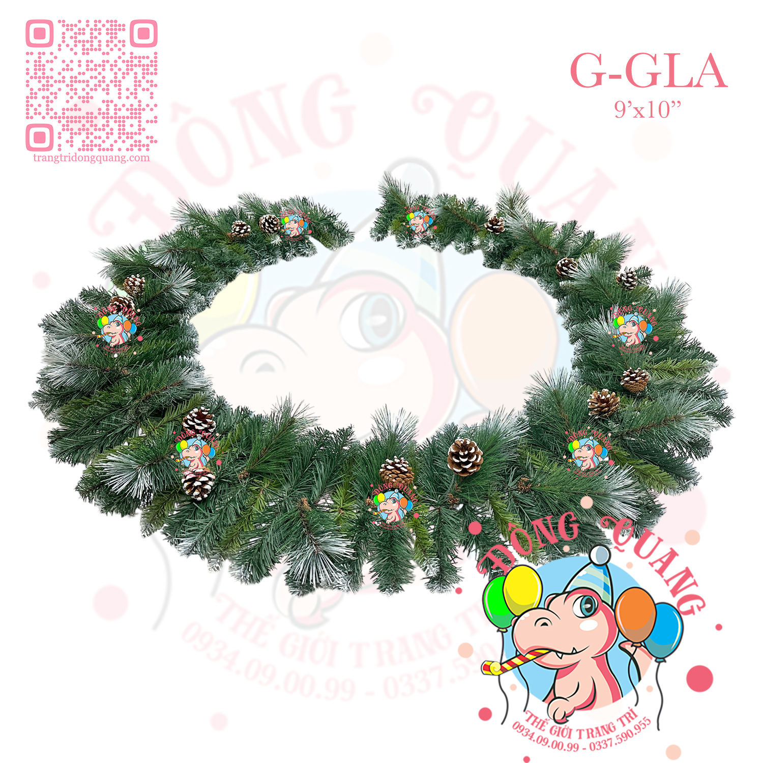 - Chất liệu: 3 loại lá PVC, cước phun sơn, trái thông.