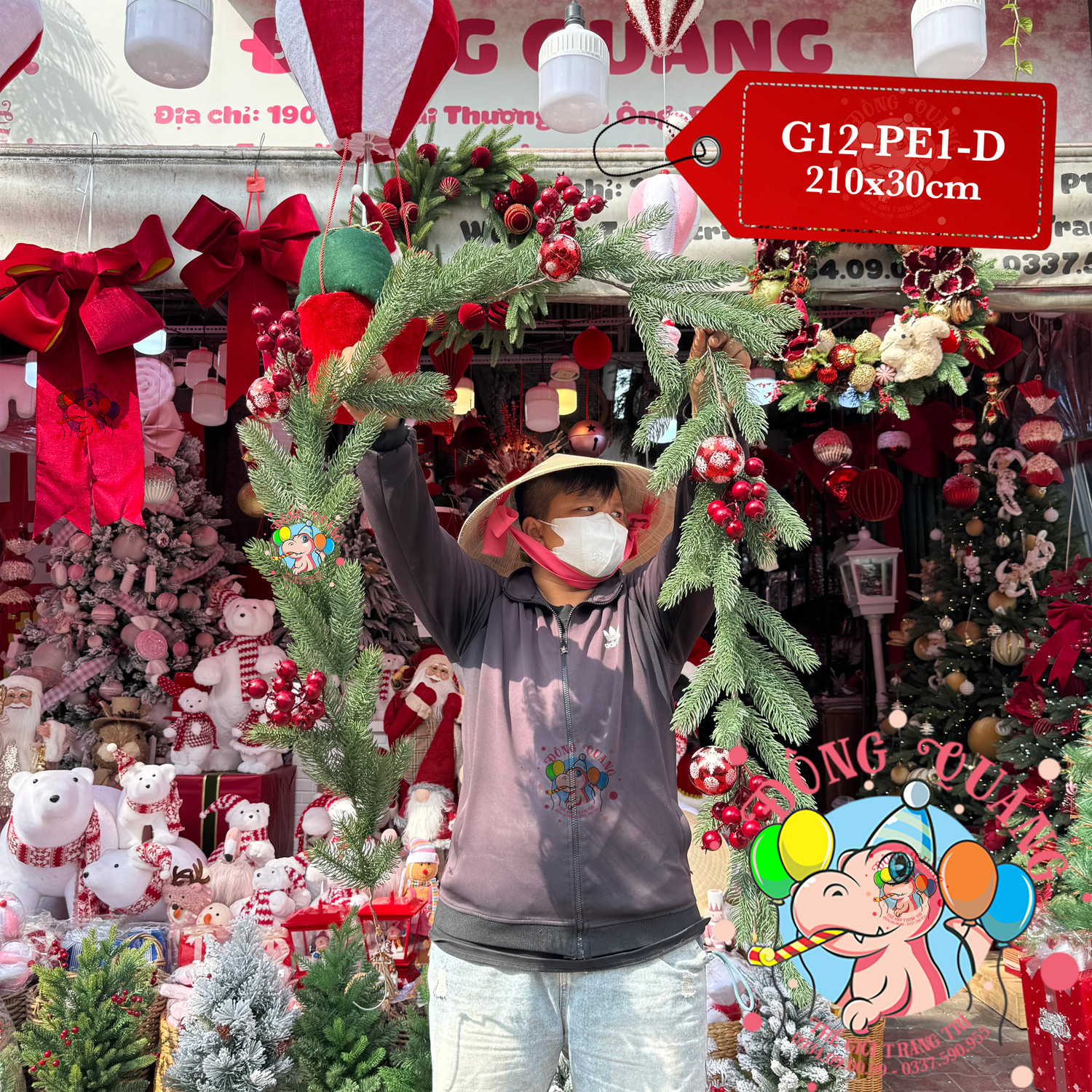 - Chất liệu: lá PE, cherry, trái châu.