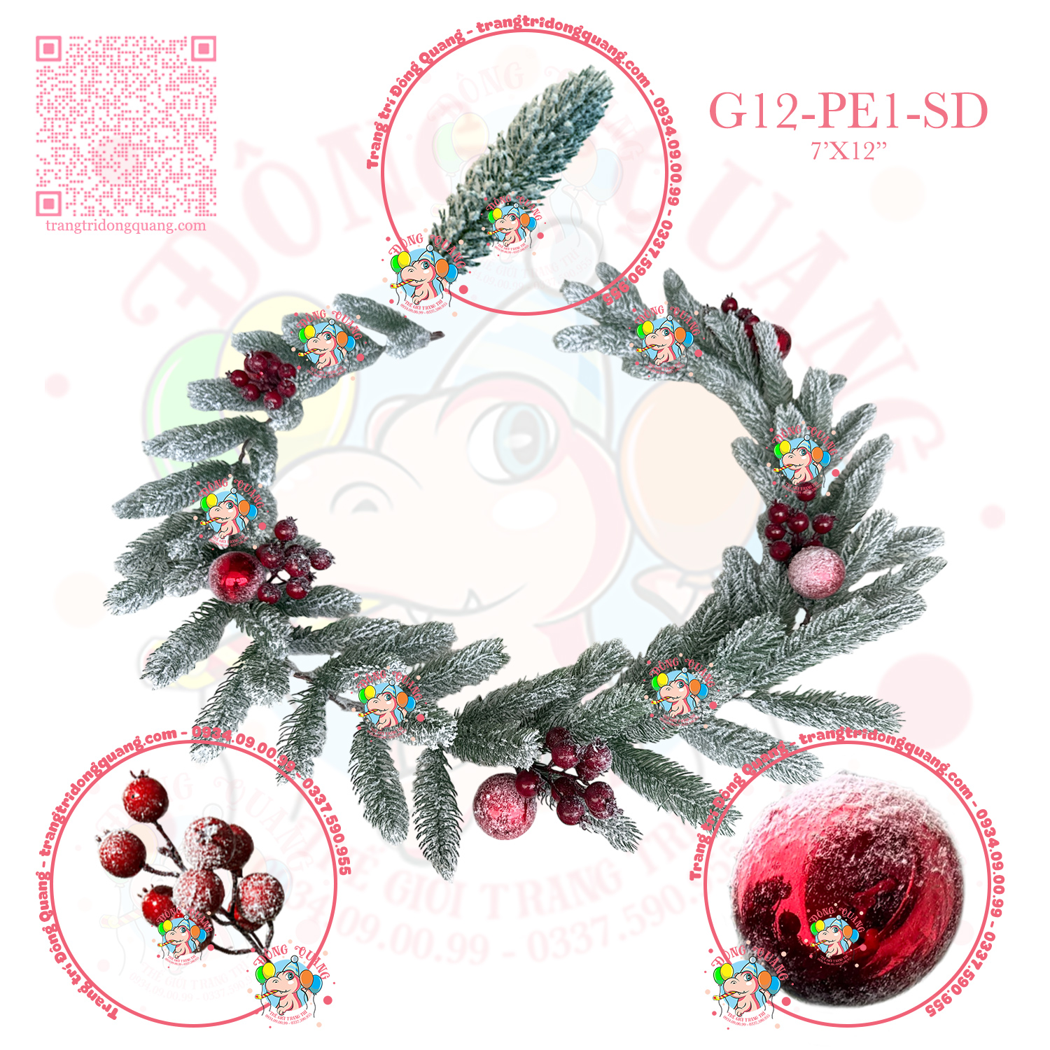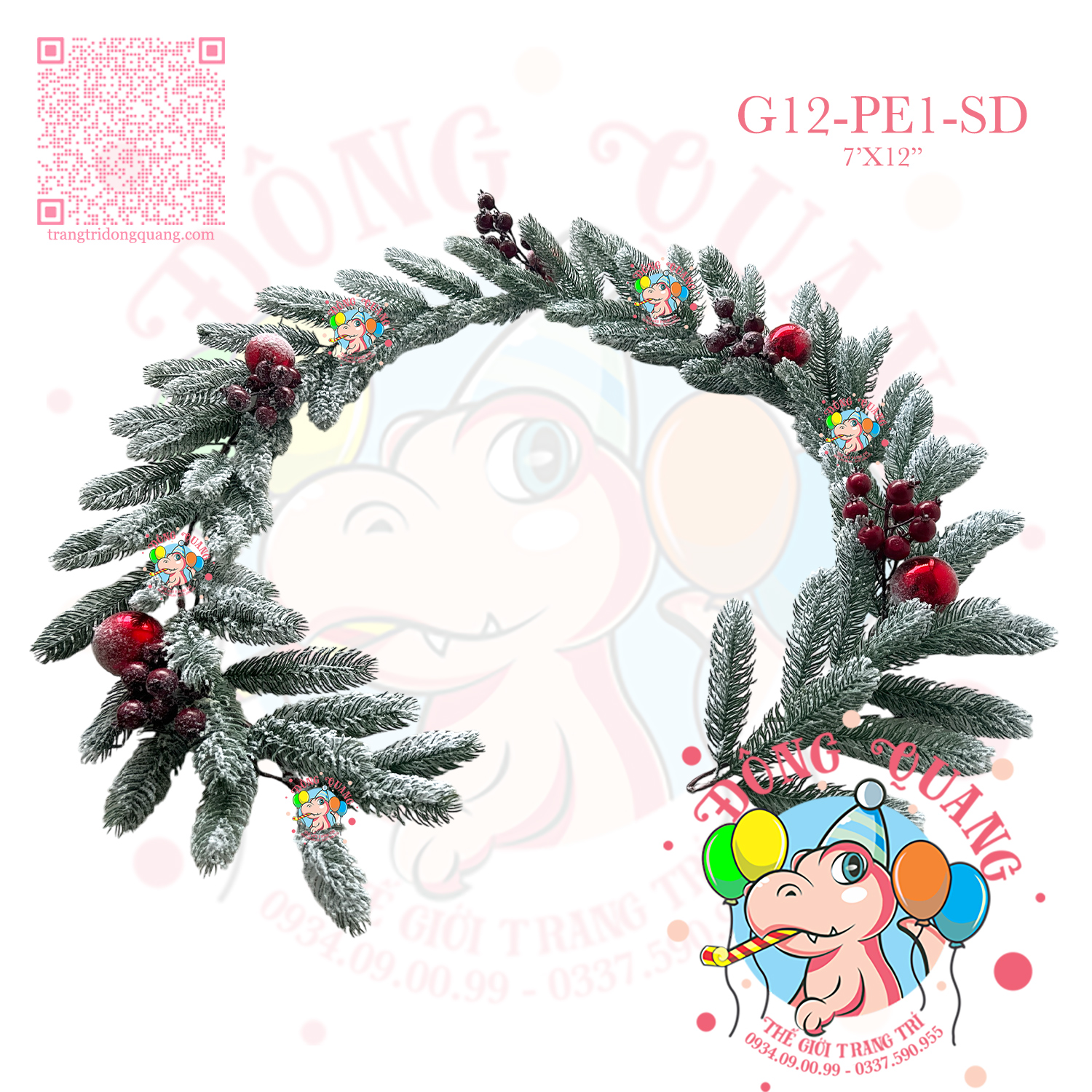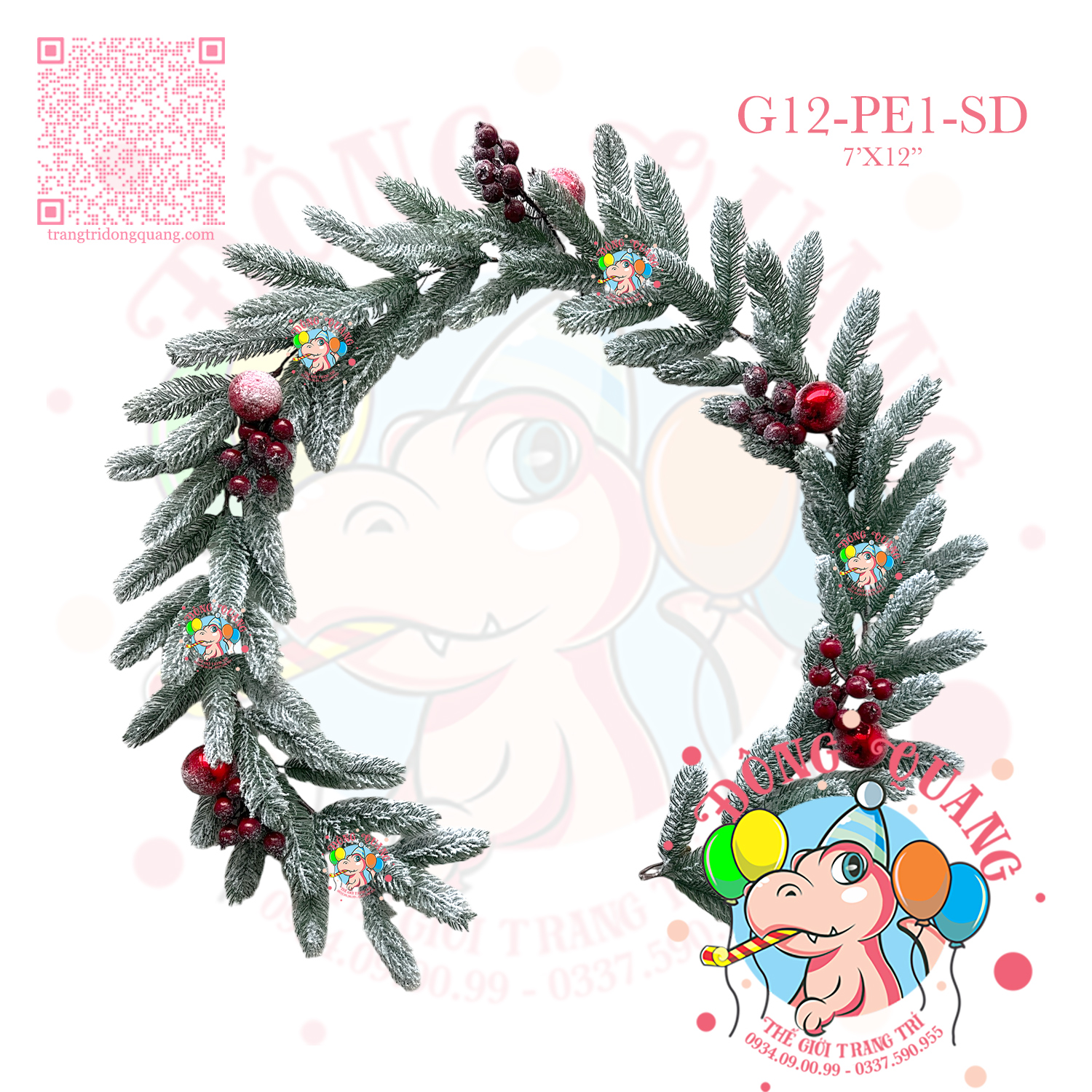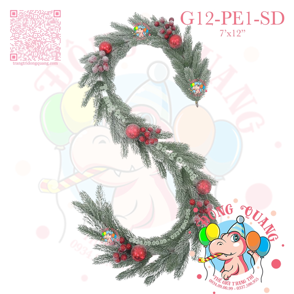 Dây trang trí nhánh thông PE lá đơn phủ tuyết