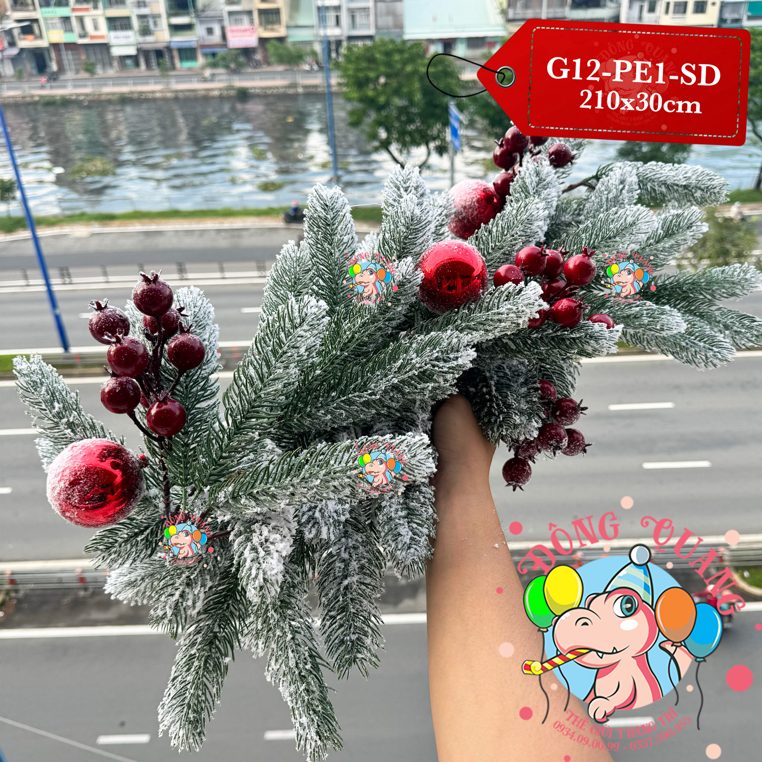 - Chất liệu: lá PE phủ tuyết, cherry.