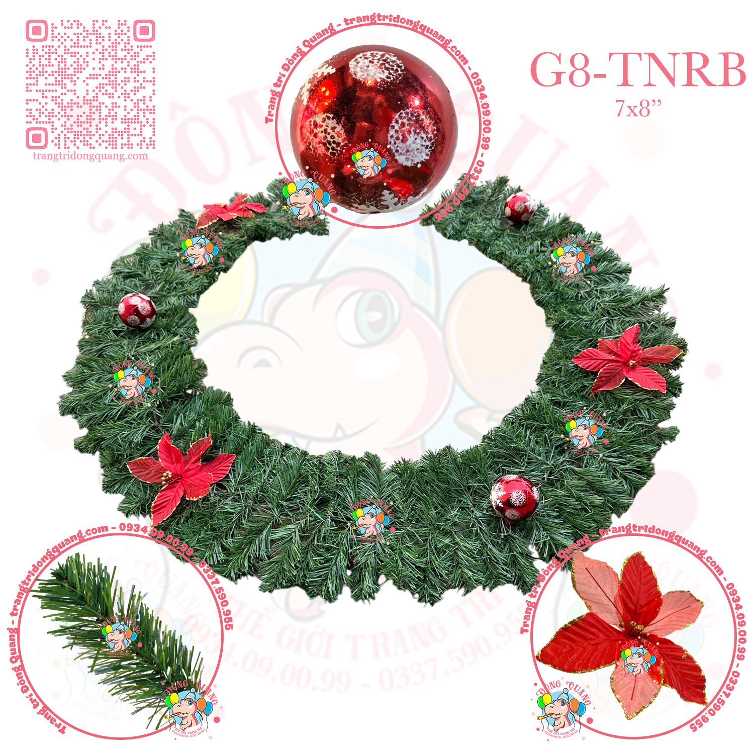 - Chất liệu: lá PVC, trạng nguyên, trái châu.