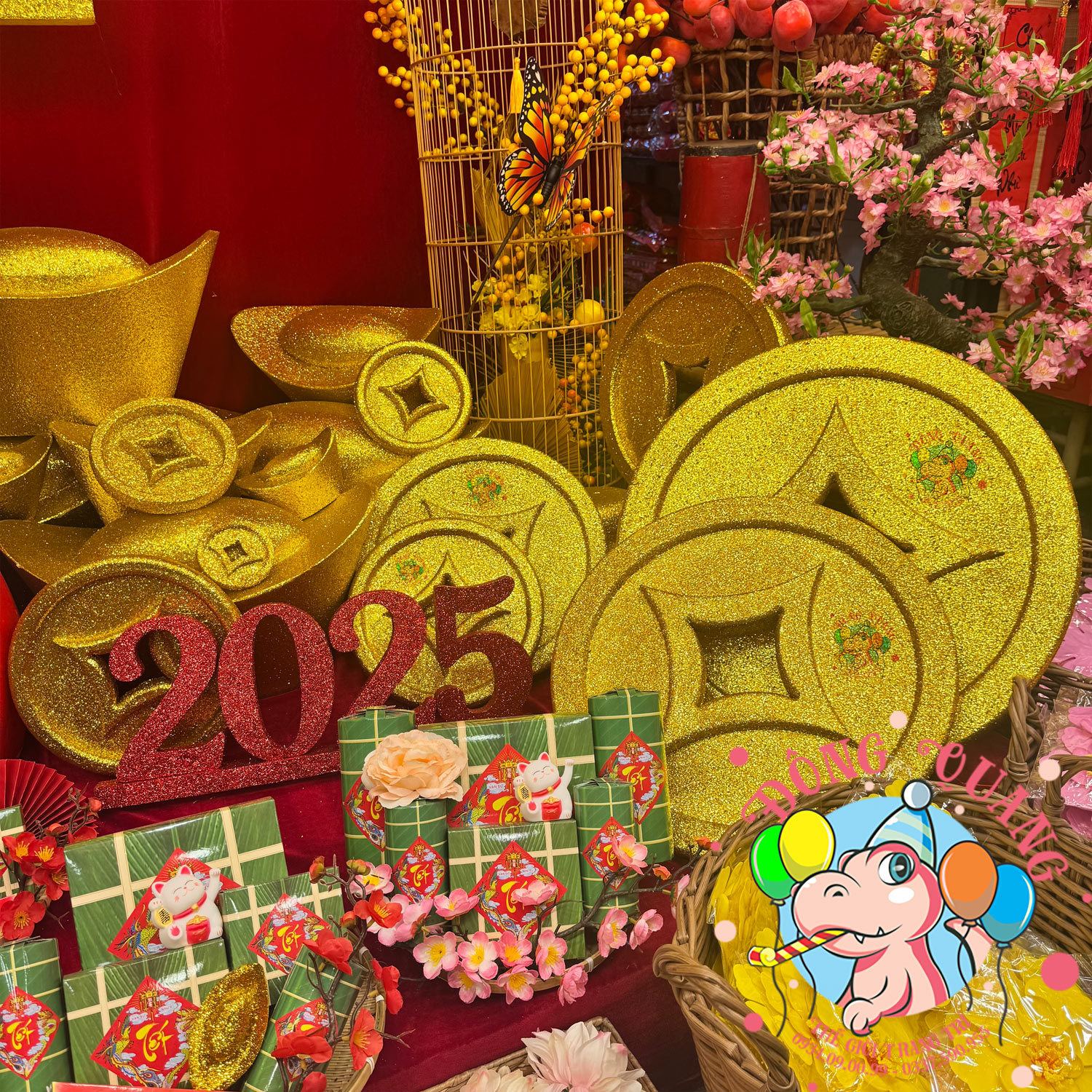 - Chất liệu: Mút xốp (foam), phun kim tuyến.