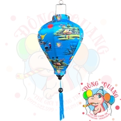 - Chất liệu: khung tre, gỗ, vải phi bóng in hoa văn.