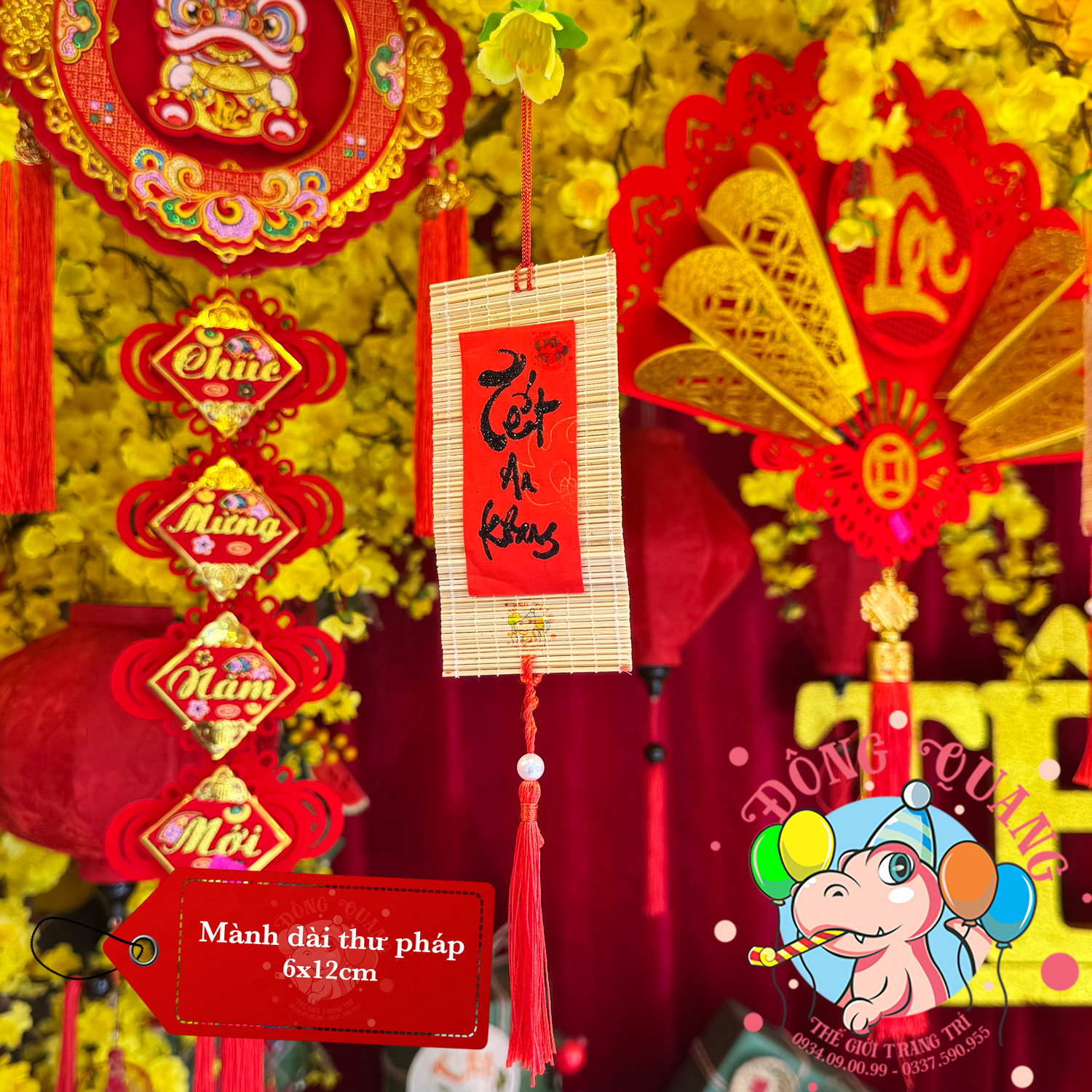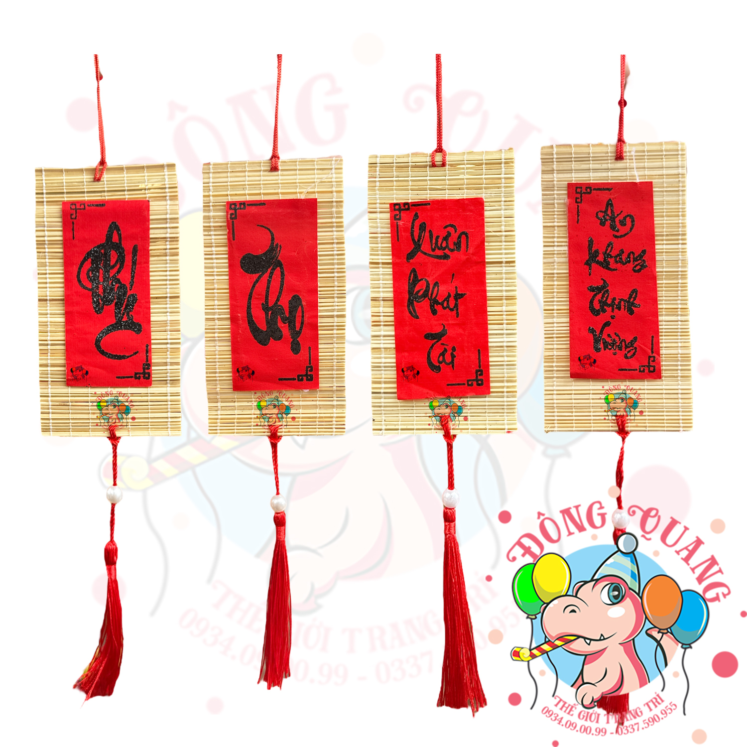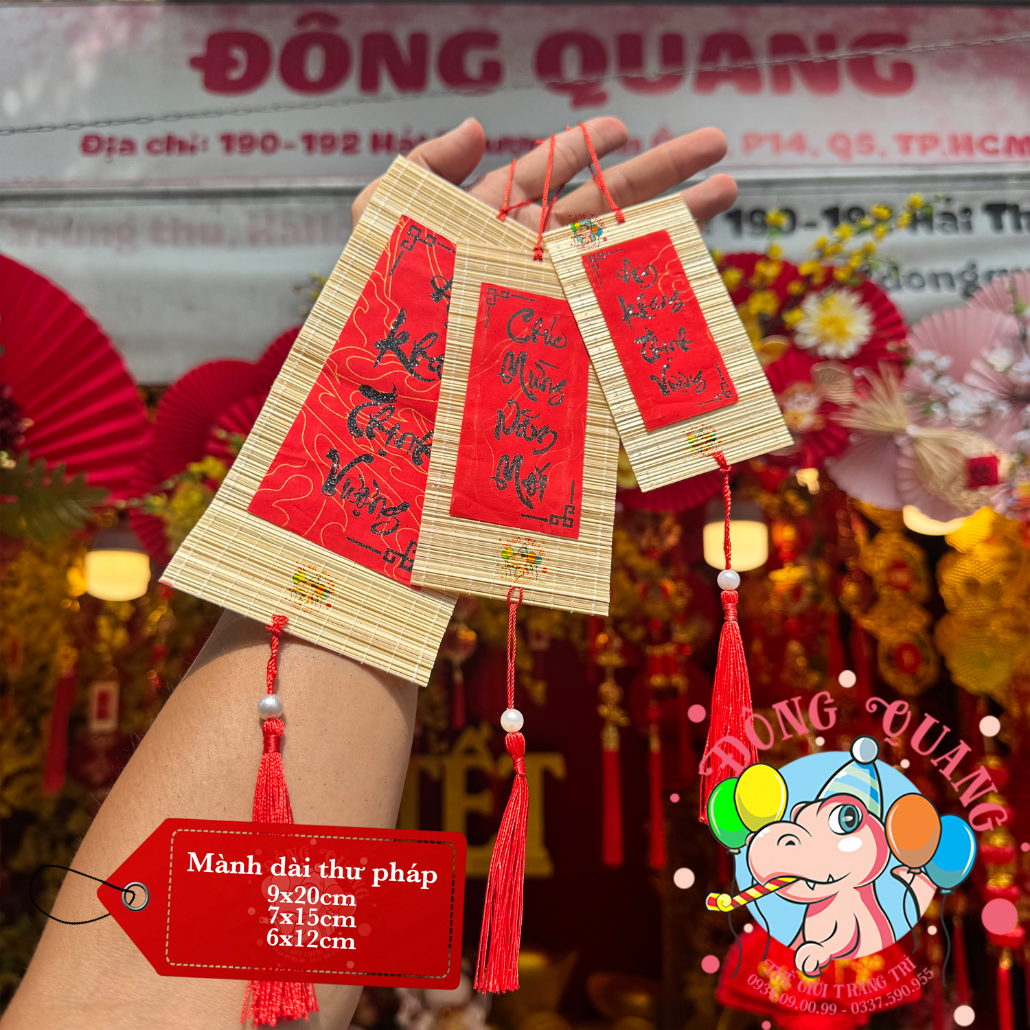 - Chất liệu: mành tre, giấy viết chữ thư pháp.