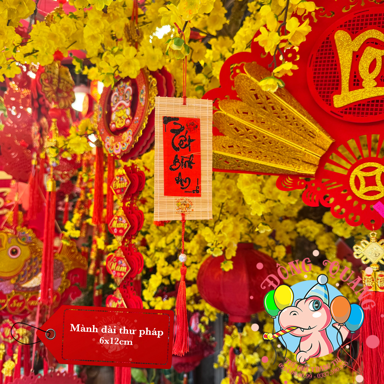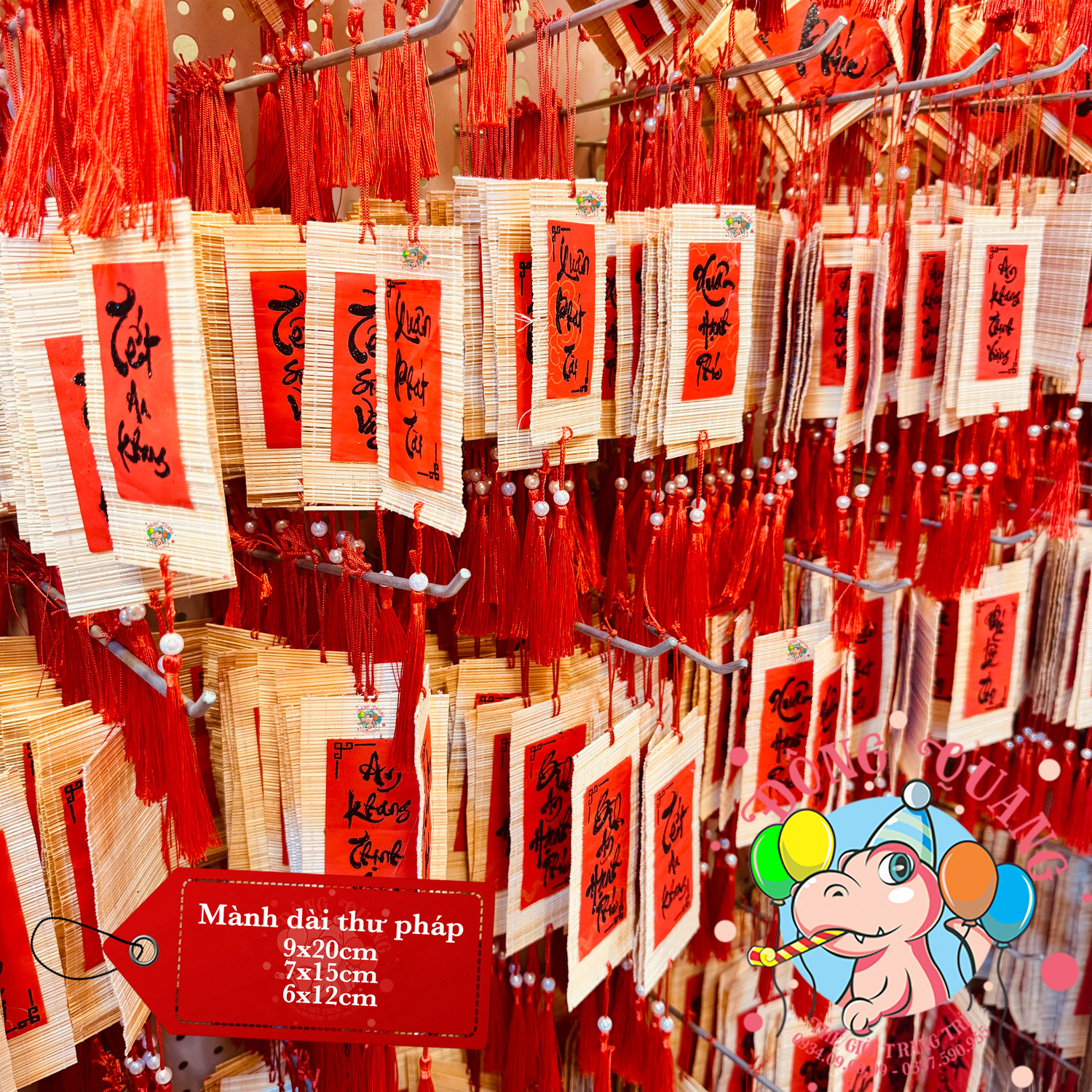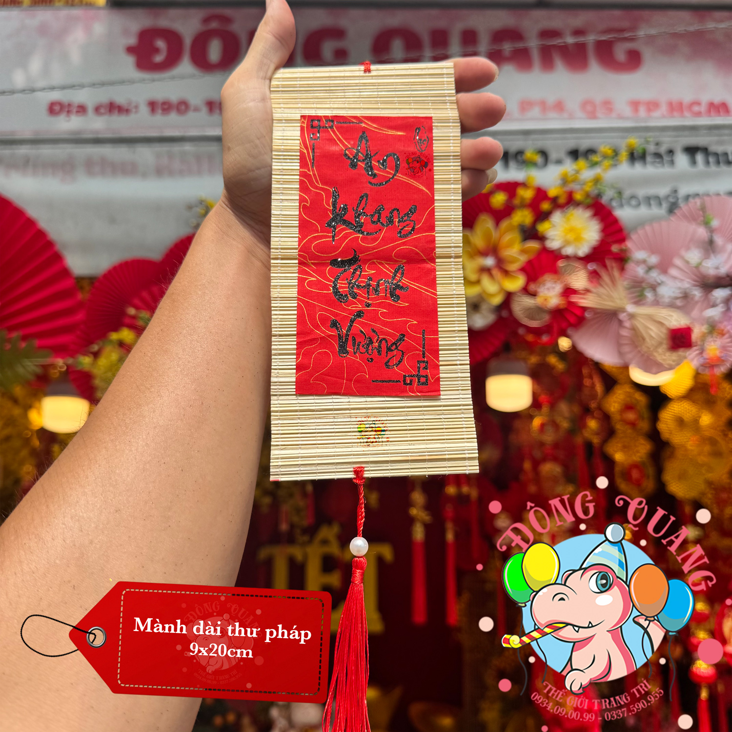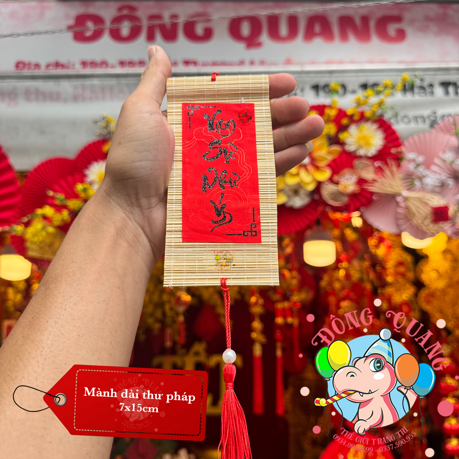 - Chất liệu: mành tre, giấy viết chữ thư pháp.