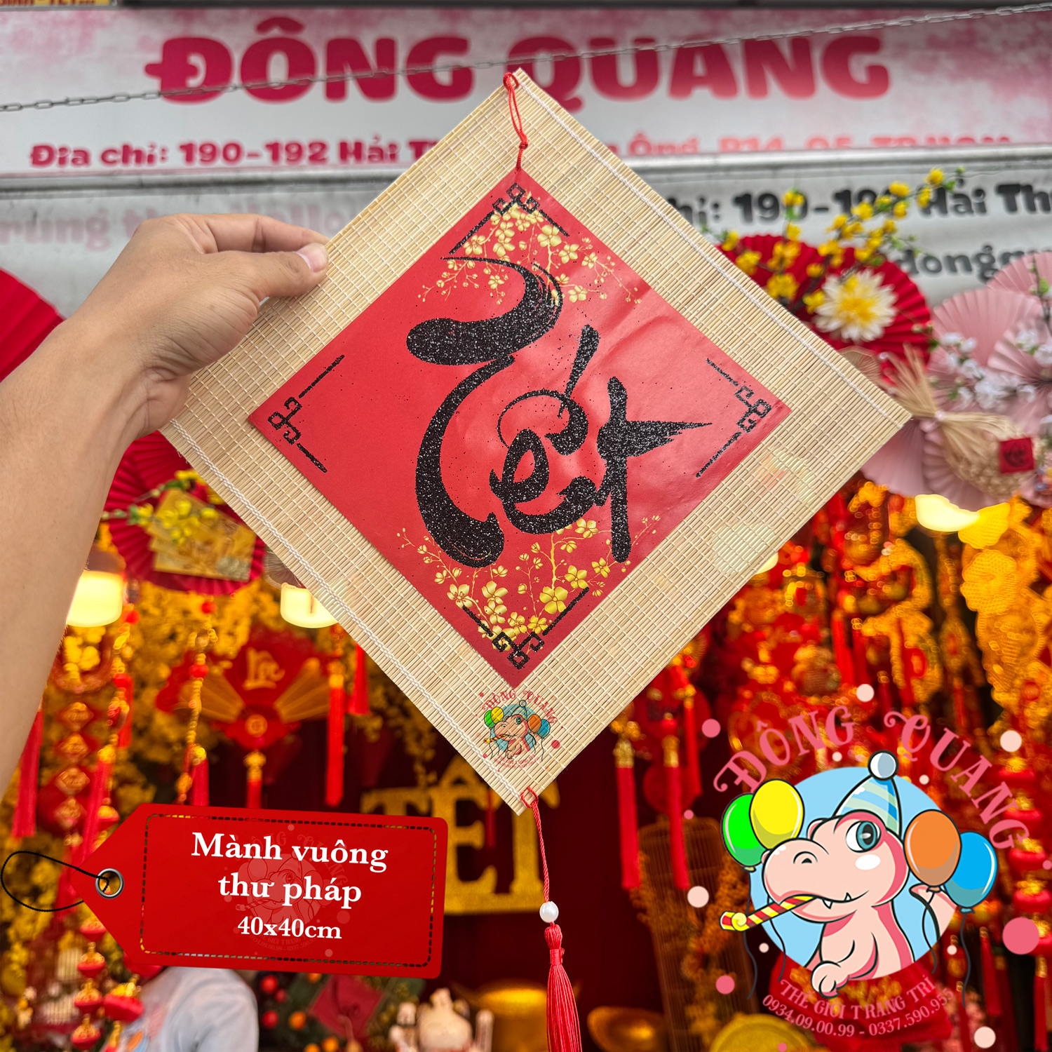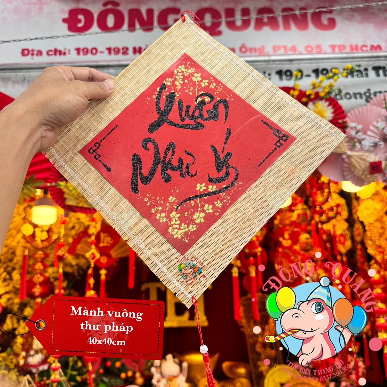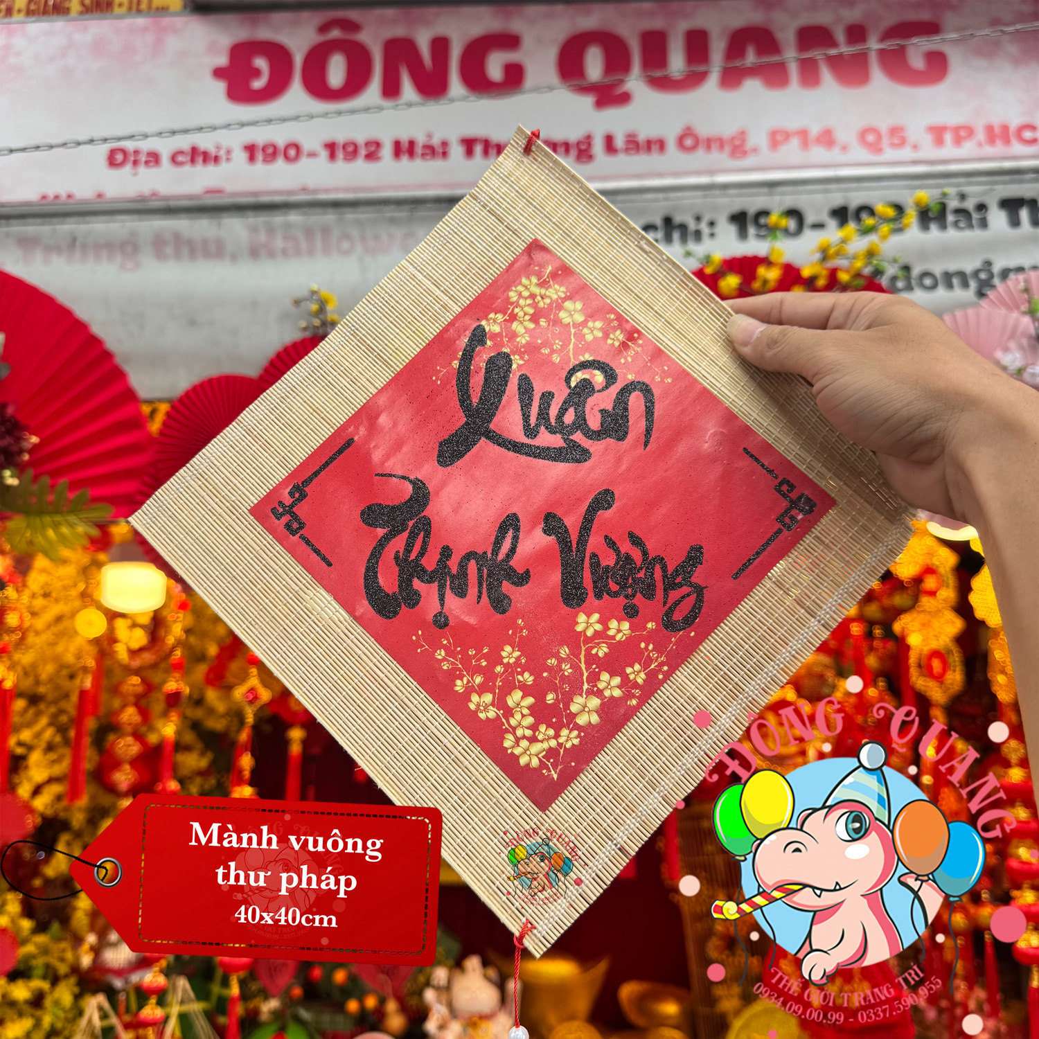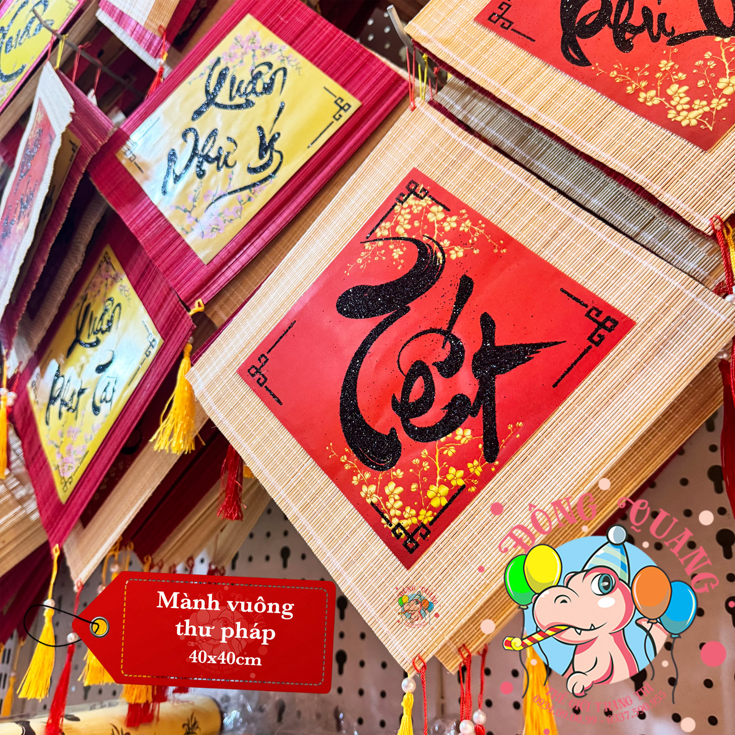 - Chất liệu: mành tre, giấy viết chữ thư pháp.