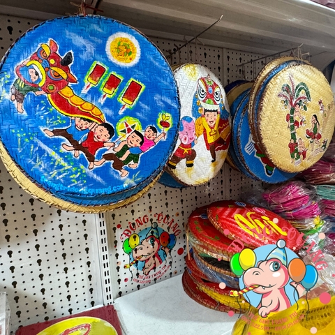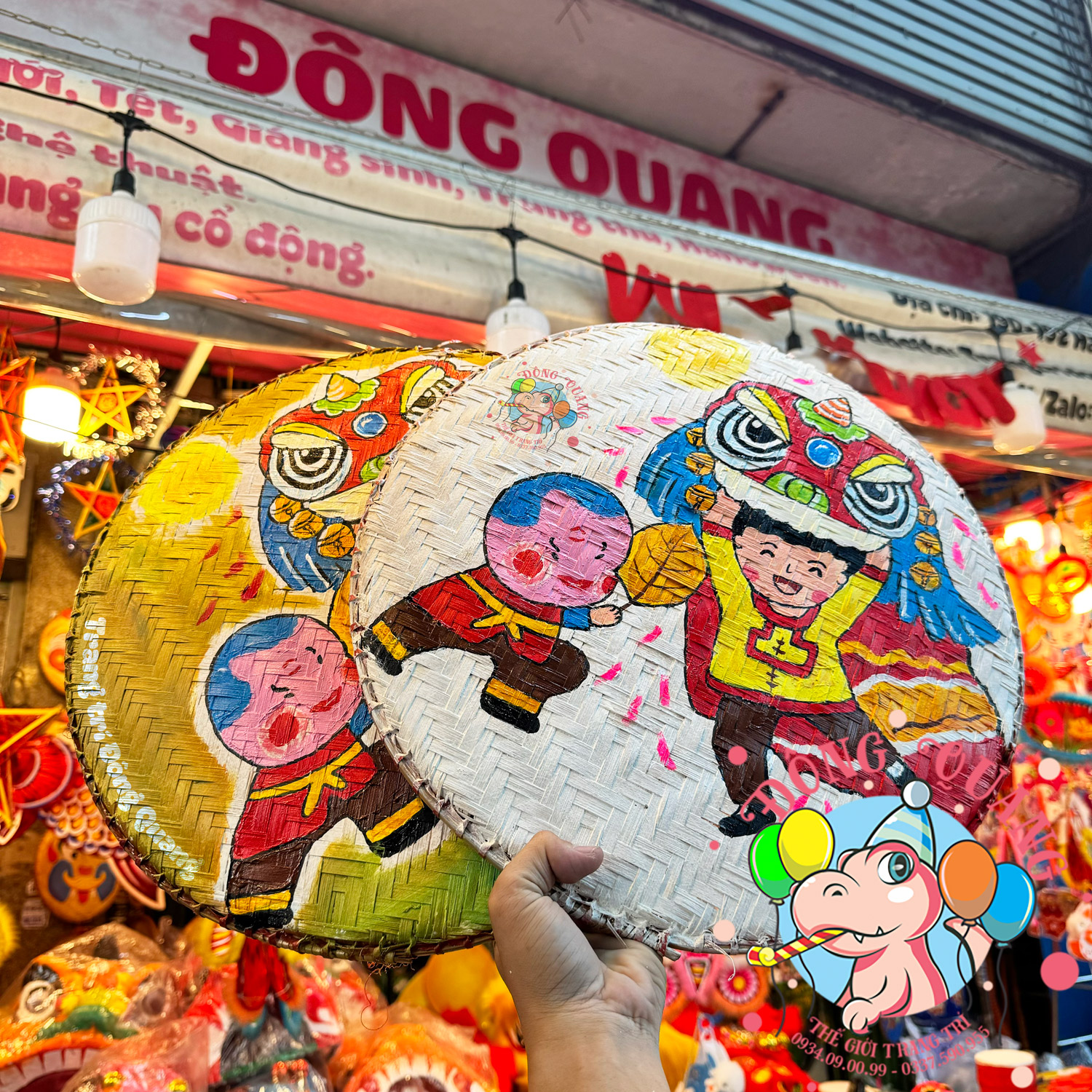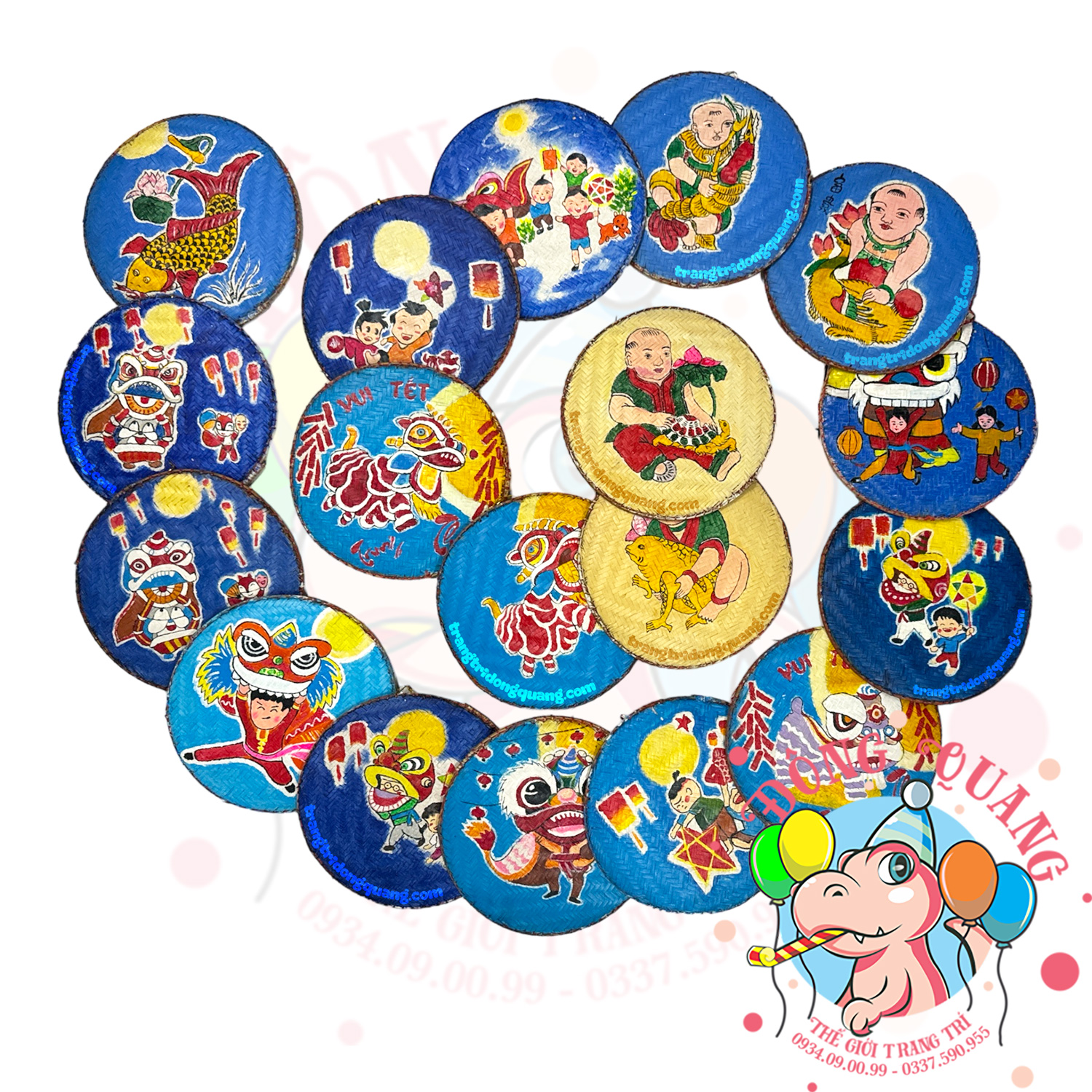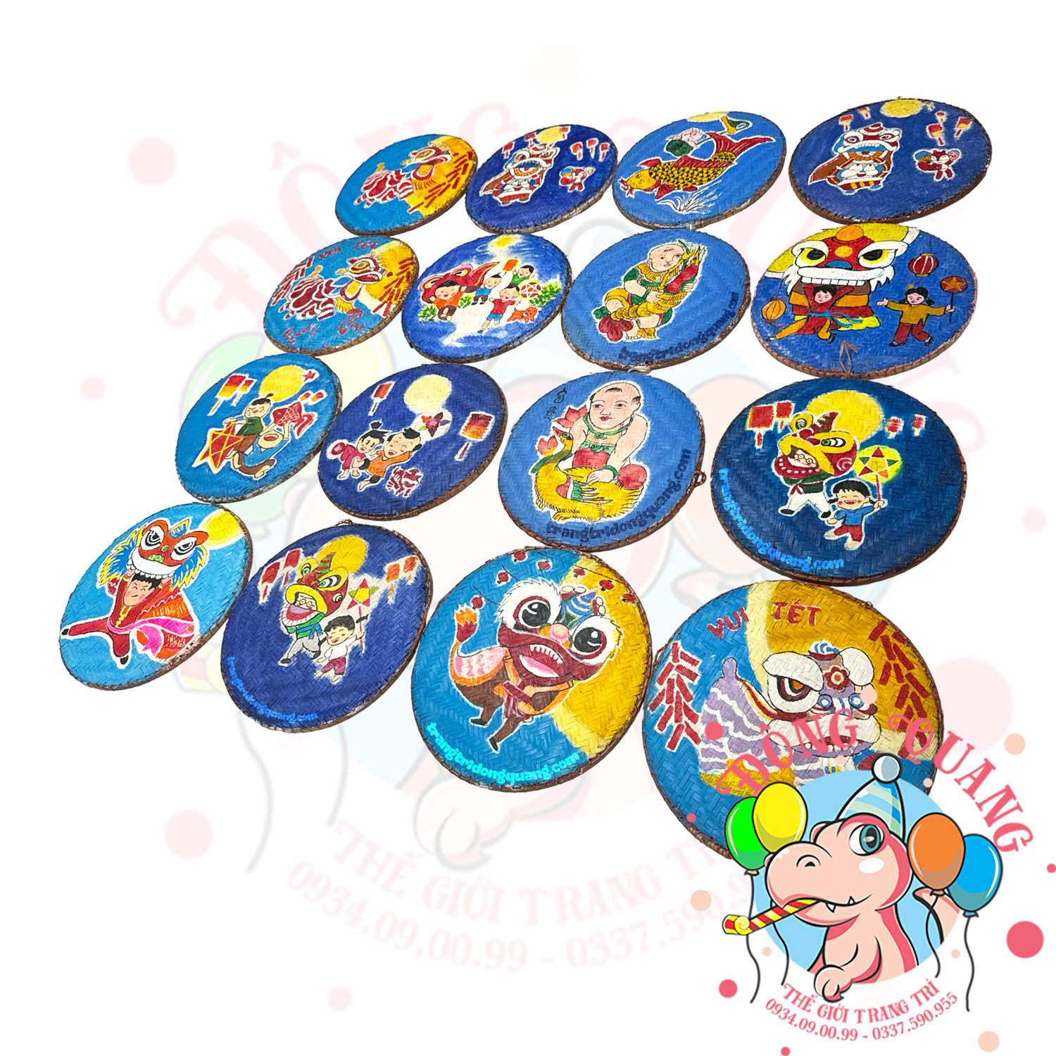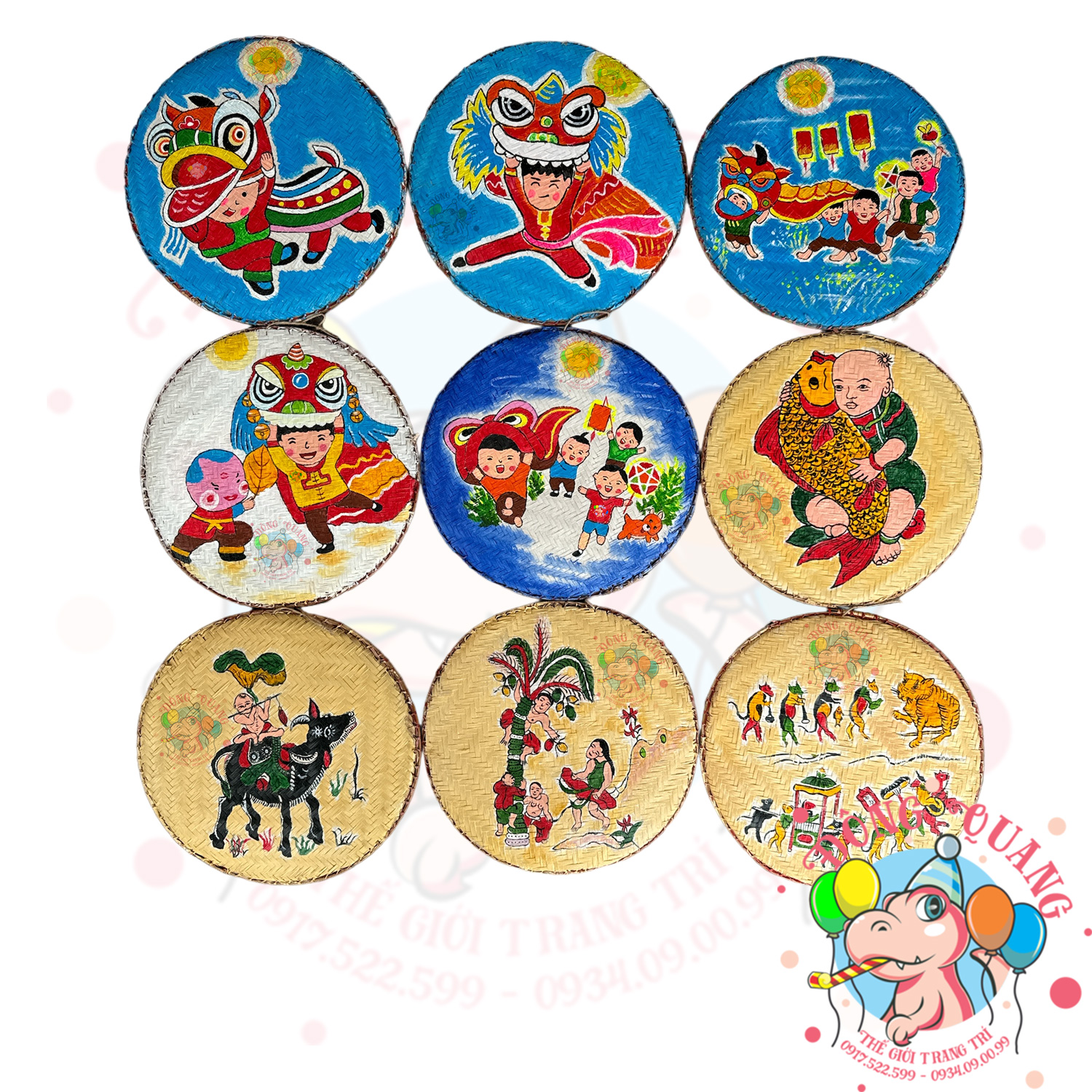 Chất liệu: tre đan thủ công, vẽ hoạ tiết.