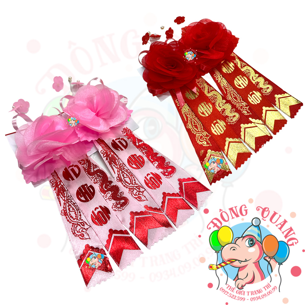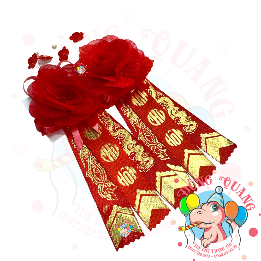 Bộ gồm 2 hoa: Chủ hôn nhà Trai (màu đỏ) hoặc chủ hôn nhà Gái (màu hồng) Nếu bạn bên gái hãy mua 2 hoa màu hồng và bên trai hãy mua 2 hoa màu đỏ để người đàn ông và đàn bà mỗi bên đều được gắn.