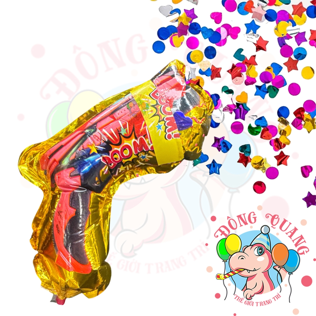- Thiết kế độc đáo mô phỏng súng đồ chơi cho trẻ em bên trong là giấy tổng hợp được cắt li ti, khi bắn sẽ kèm theo tiếng pháo nổ giòn giã và những mảnh giấy đủ hình dáng, màu sắc.