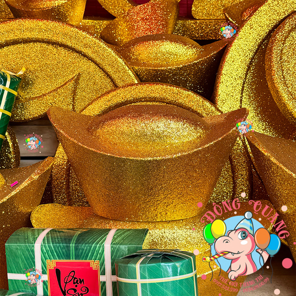 - Chất liệu: Mút xốp (foam) phủ kim tuyến vàng.