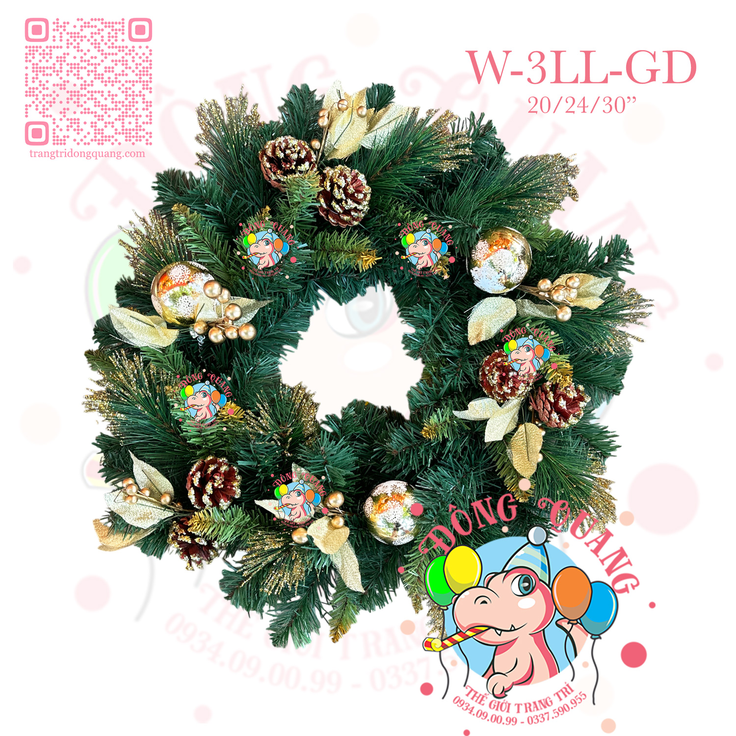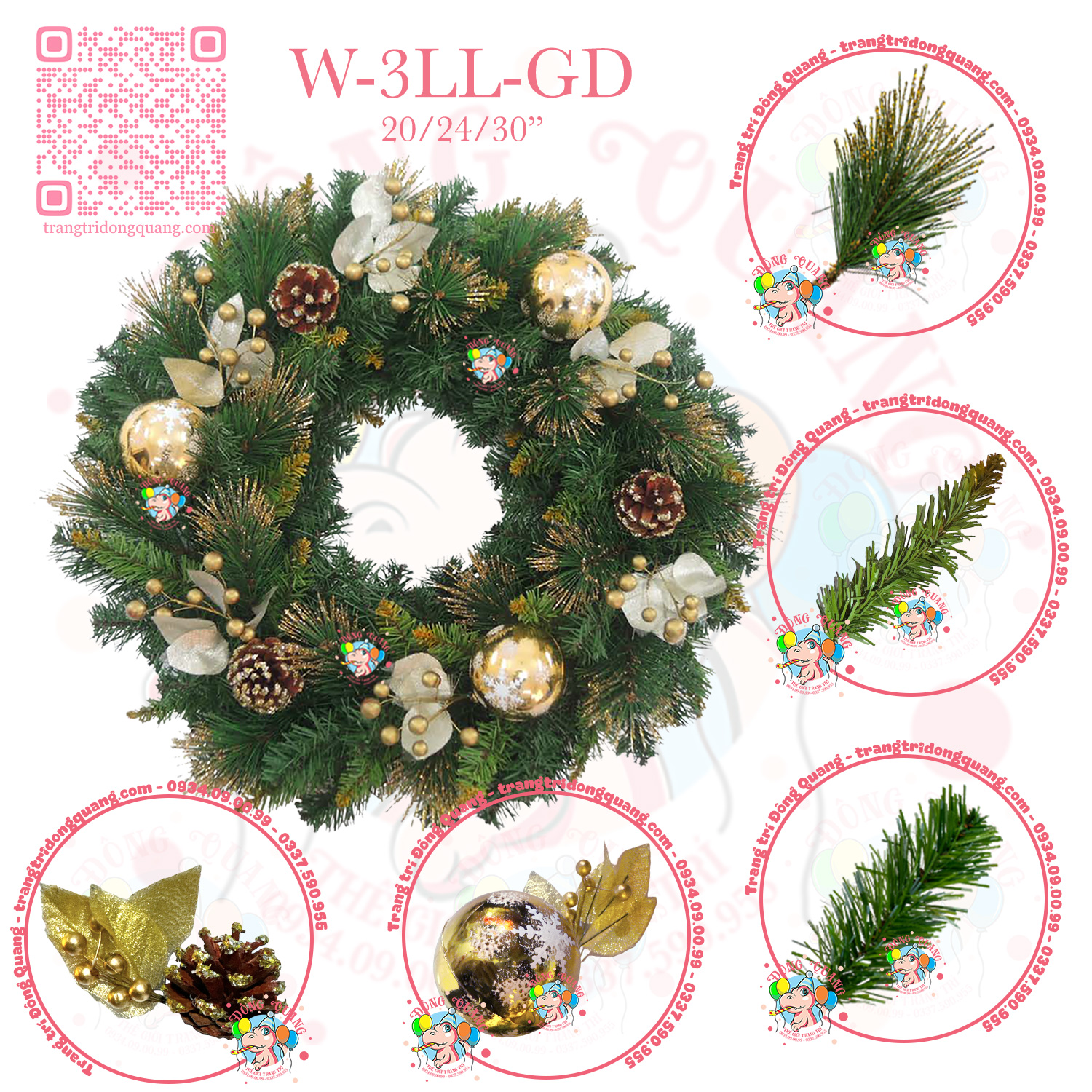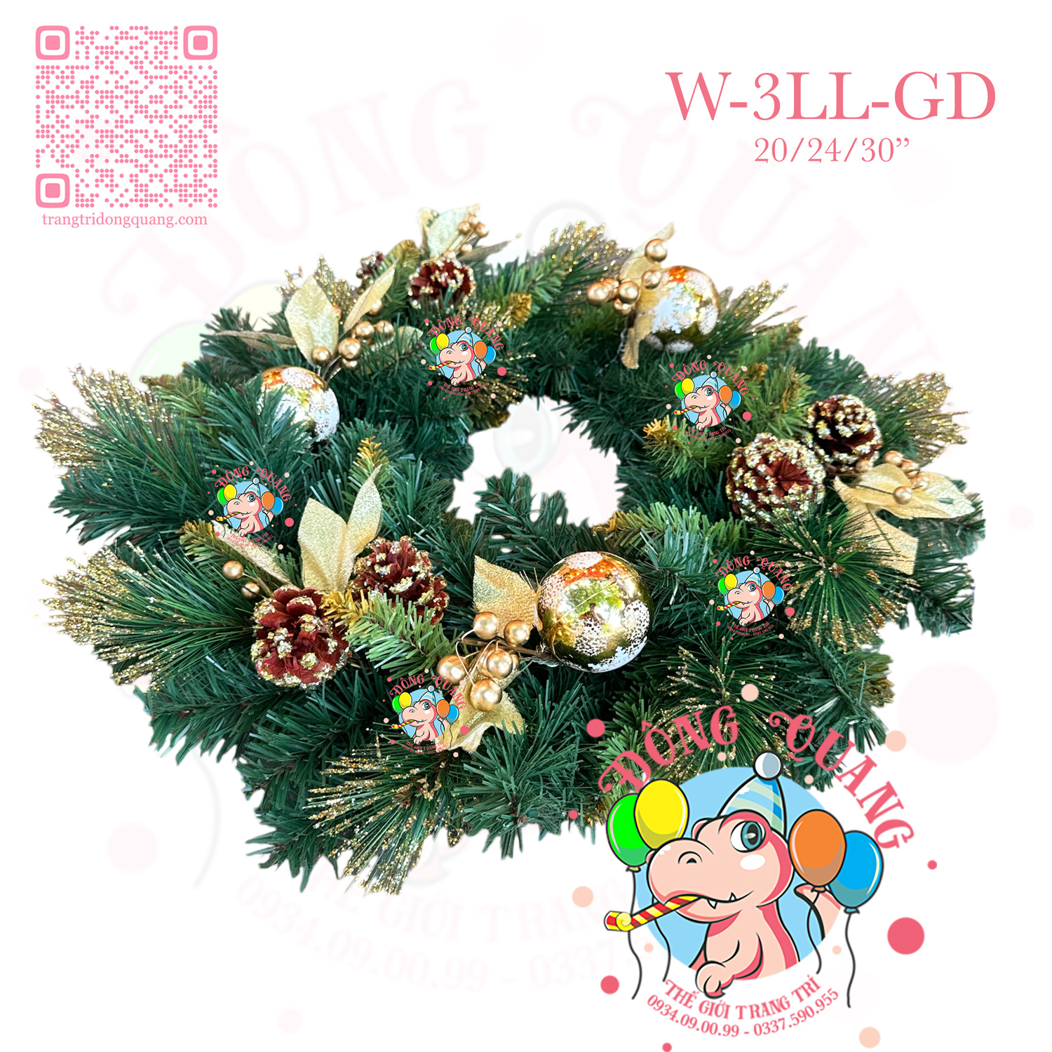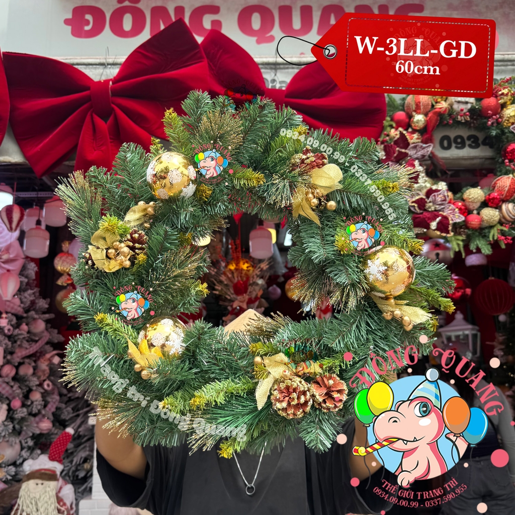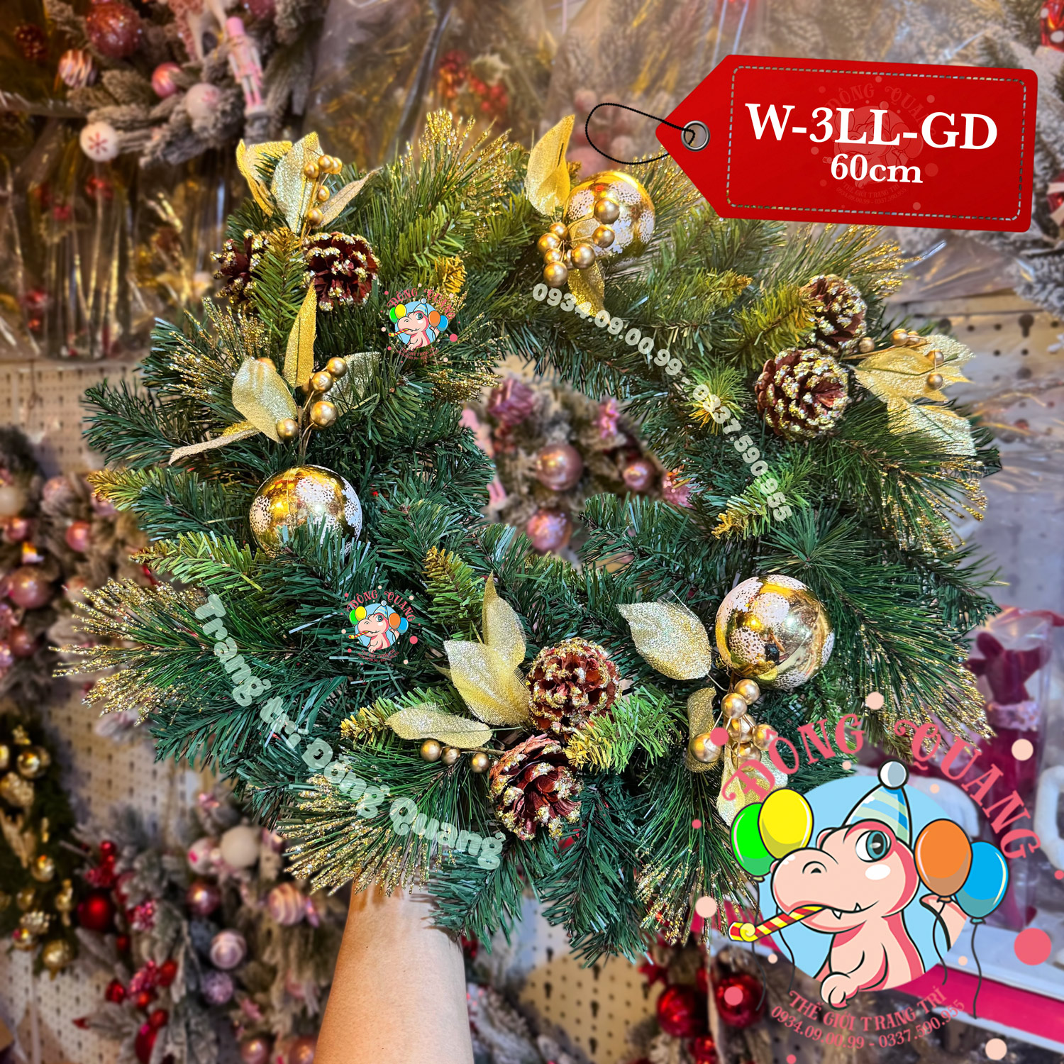 - Chất liệu: 3 loại lá PE, PVC, cước phun kim tuyến vàng, trái thông, cherry.