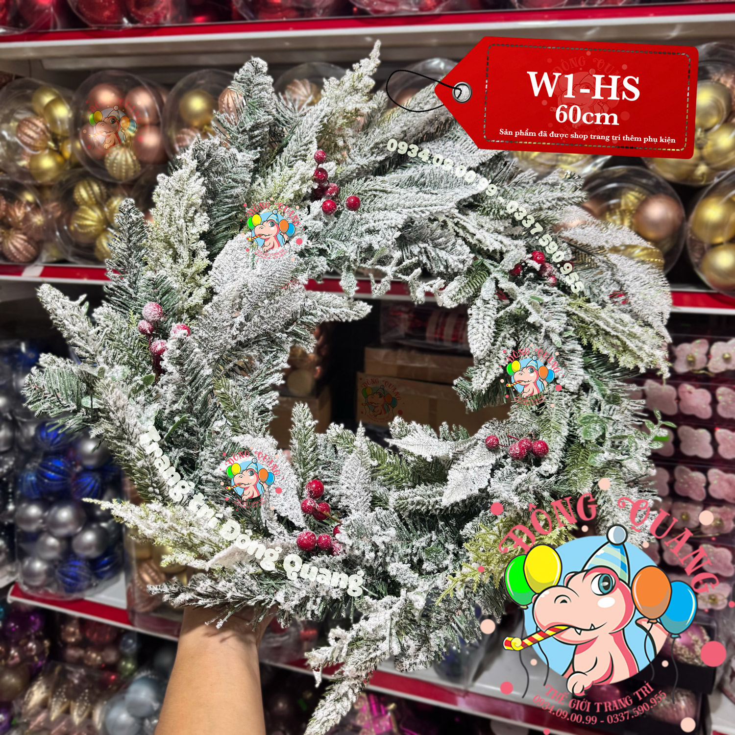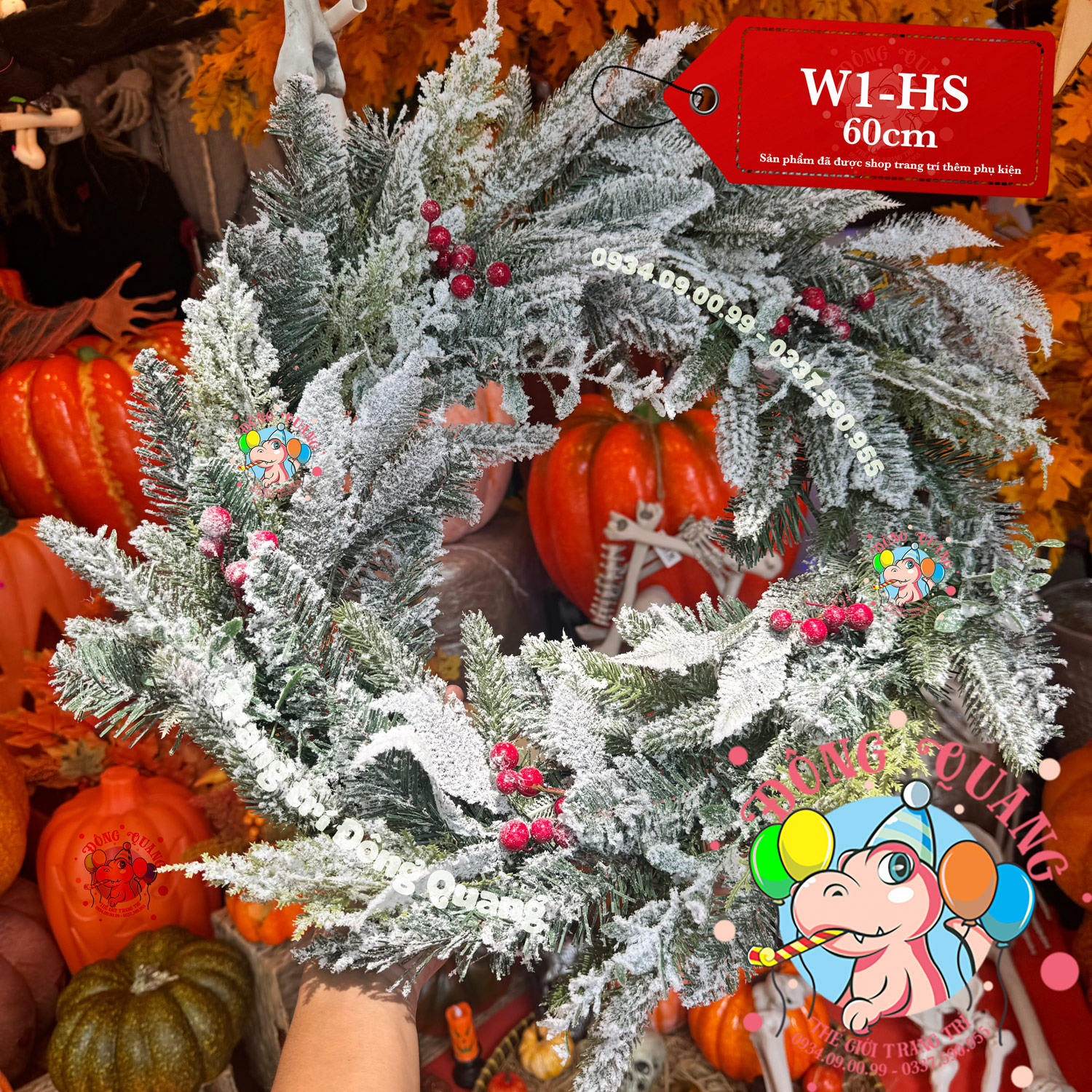 Vòng hoa 5 loại lá đầu vuốt nhọn phủ tuyết cherry