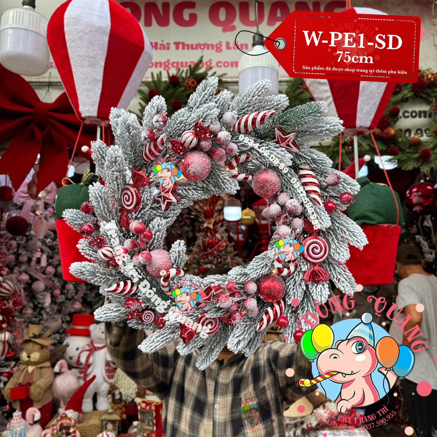- Chất liệu: PE lá chiếc cao cấp, phủ tuyết, cherry.