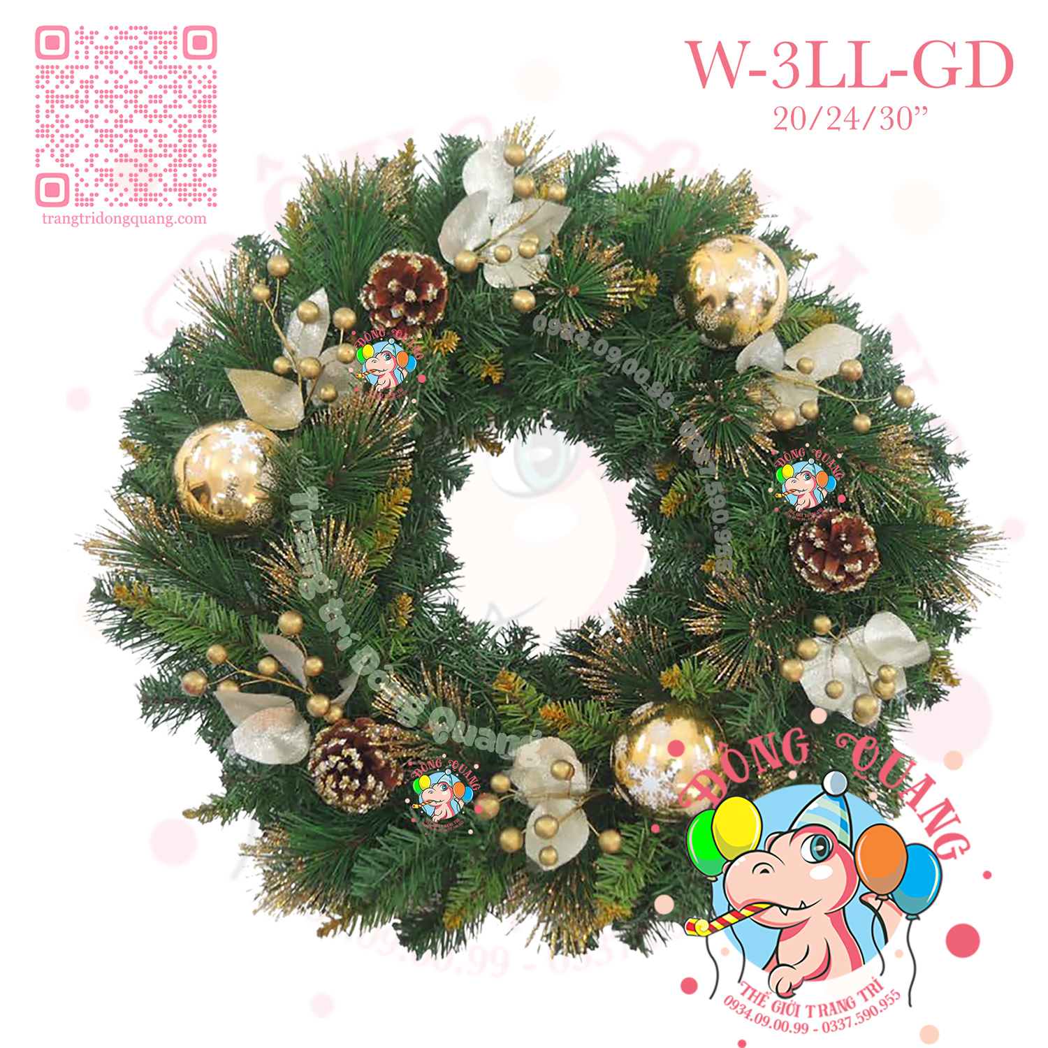 VÒNG HOA 3 LOẠI LÁ PHUN SƠN GẮN TRÁI THÔNG (W-GLA)