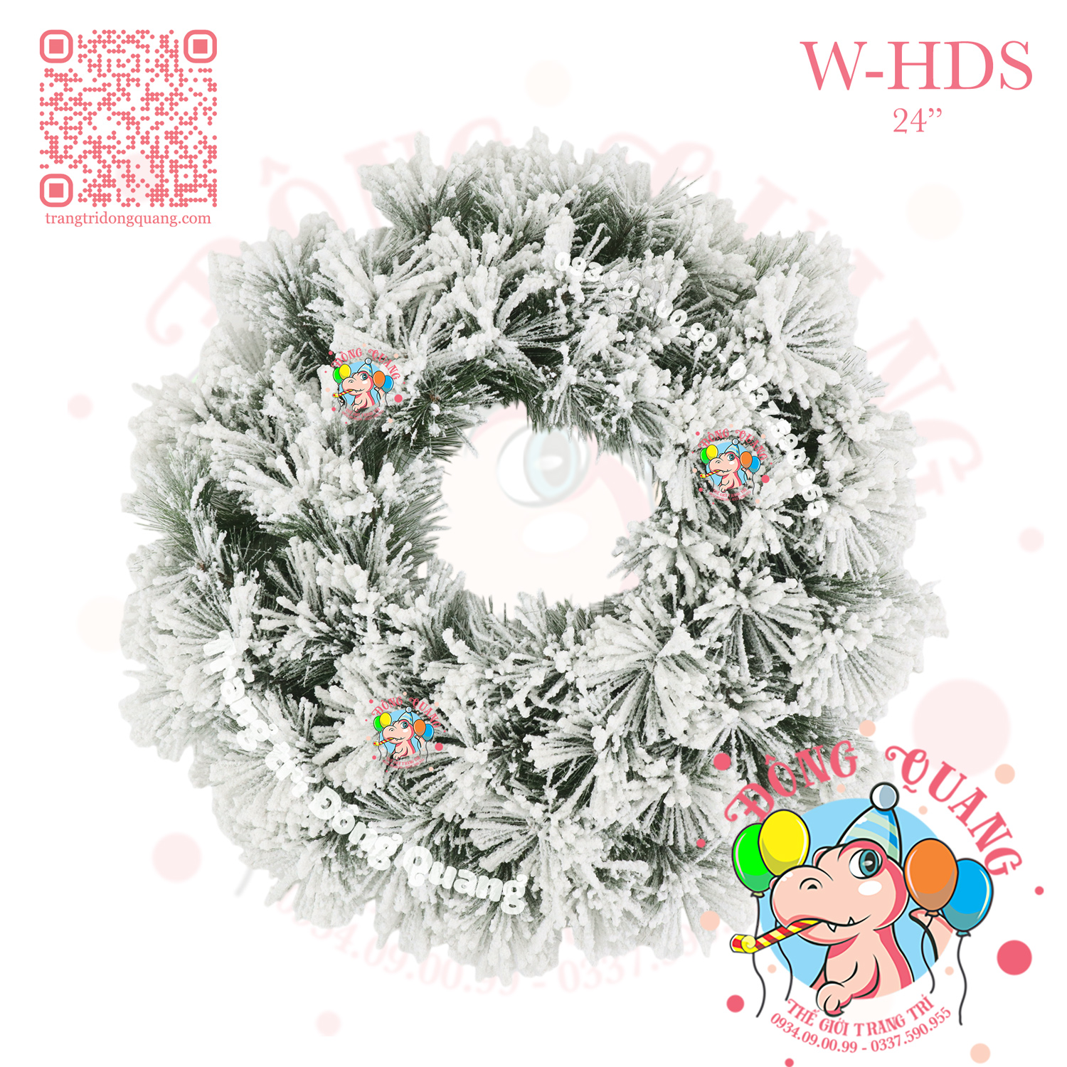 VÒNG HOA 3 LOẠI LÁ PHỦ TUYẾT GẮN TRÁI THÔNG (W-WAP)