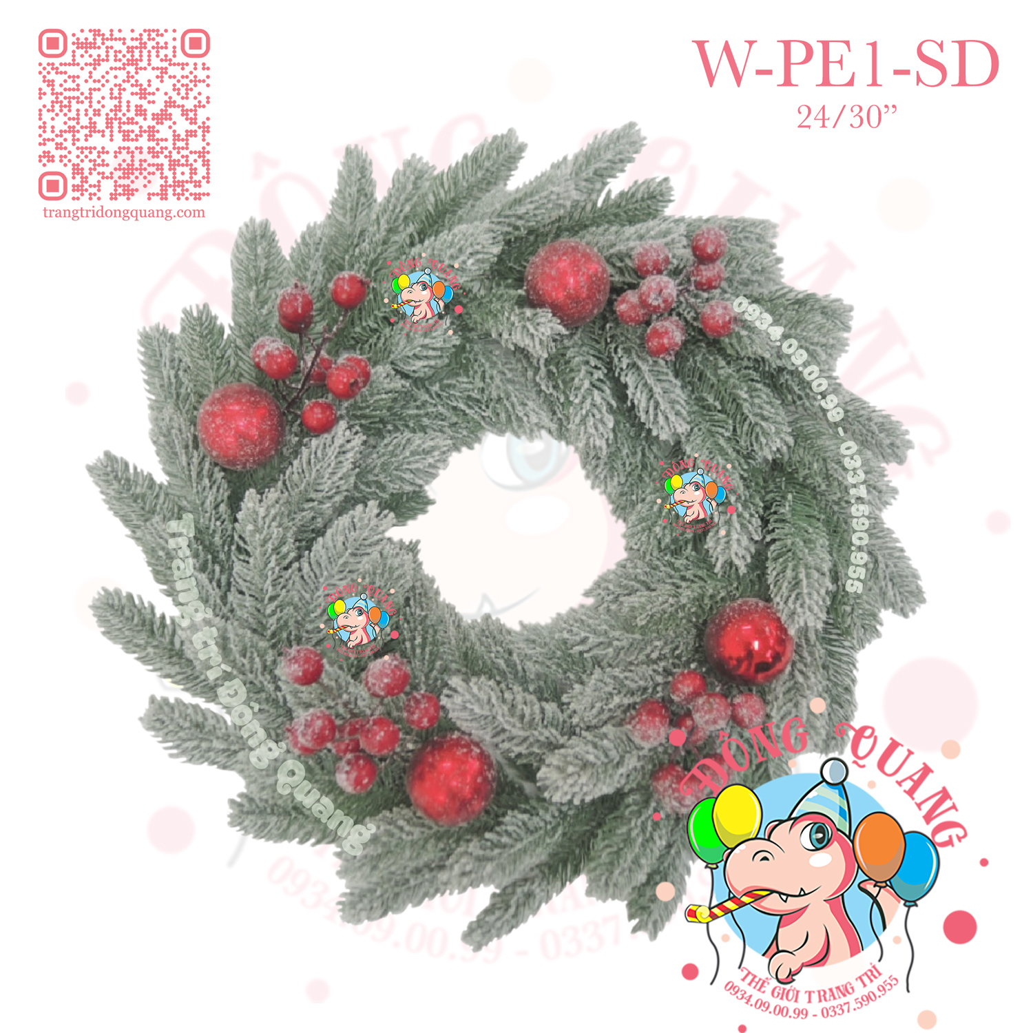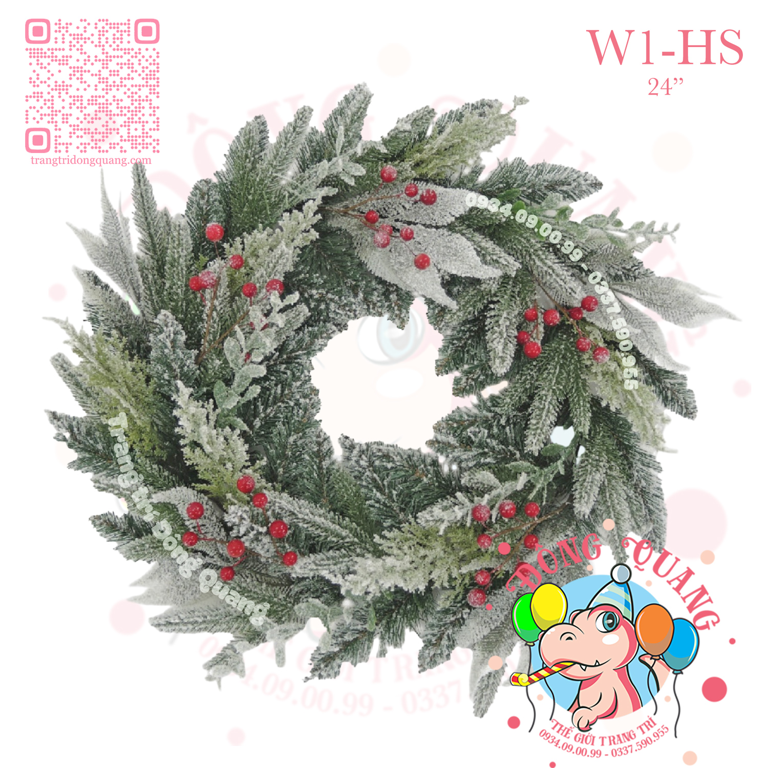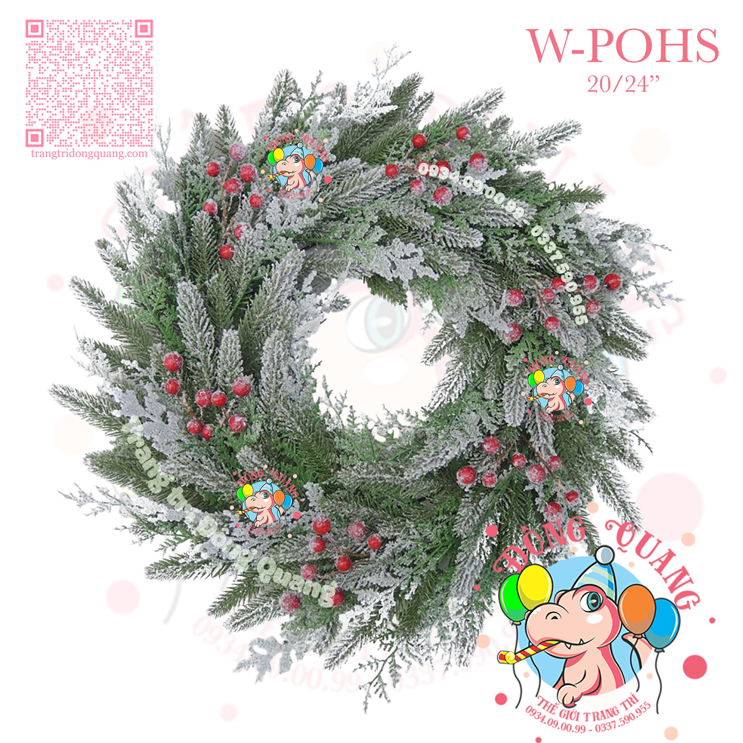 VÒNG HOA 2 LOẠI LÁ PHỦ TUYẾT GẮN TRÁI ĐỎ (W-WAR)